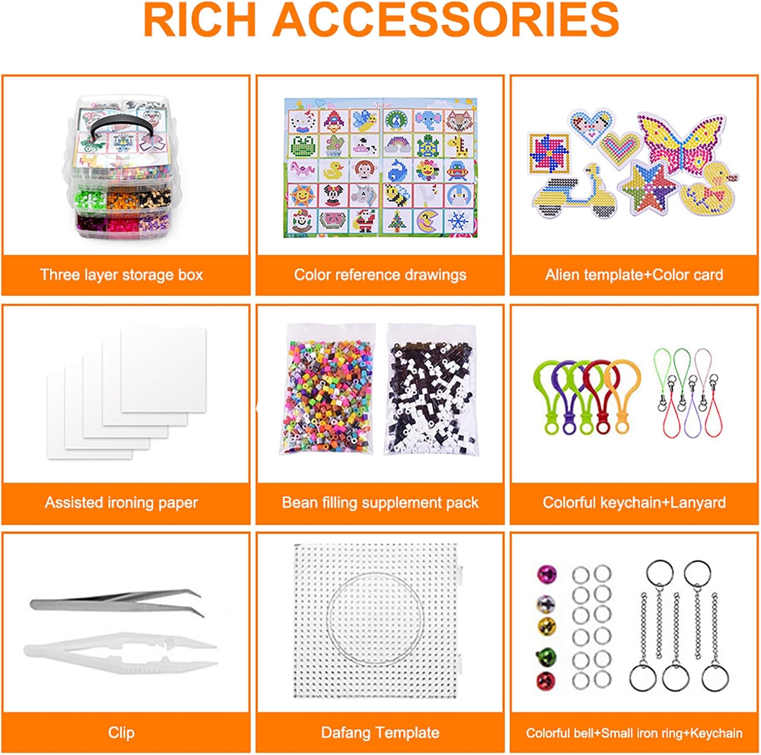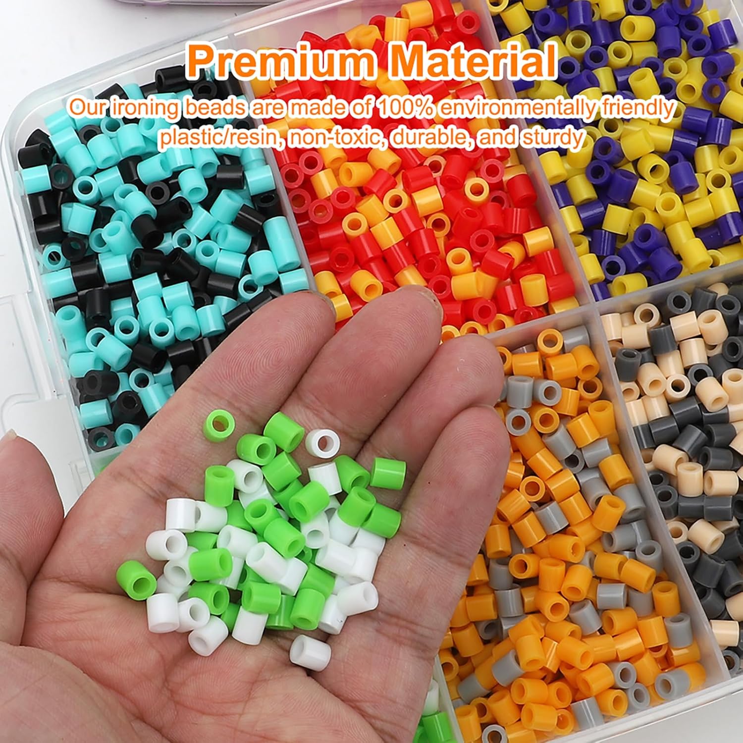 Diversi motivi: set di perline da stirare, modelli ispiratori in diversi temi, cartoni animati, animali) che stimolano l'immaginazione del bambino. Una vasta gamma di colori vivaci per tutti i desideri creativi dei bambini Grande compatibilità: perline (dimensioni 5 mm) adatte per tutte le marche di perline da 5 mm Espandere la creatività: i bambini possono imparare con i modelli o dare libero sfogo alla loro creatività per creare opere d'arte sia piatte che tridimensionali Divertimento per tutta la famiglia: le perline da stirare sono un'attività artigianale in cui tutta la famiglia si riunisce per stimolare la creatività e le abilità motorie giocosamente creando ricordi indimenticabili Iniziare con facilità: la facilità d'uso permette ai più piccoli di creare con entusiasmo opere d'arte e sperimentare il successo