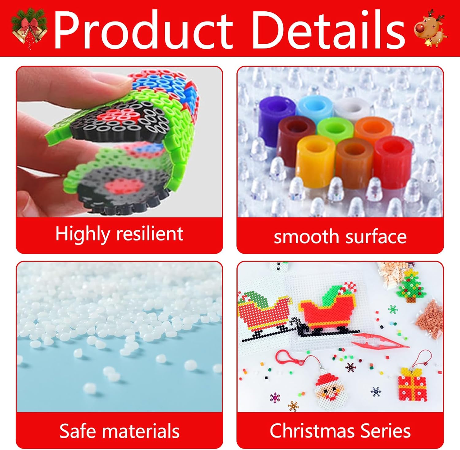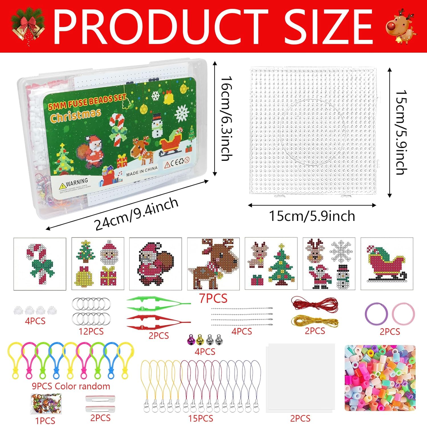 Temi natalizi: il nostro set di perline di Natale offre tutto il necessario per le feste creative: 2500 perline in 10 colori diversi, 1 piastra trasparente per perline da stirare, 7 modelli di design, 2 carte da stirare, 2 pinzette, 2 portachiavi in metallo colorato, 9 portachiavi, 4 catene di perle di metallo, 12 anelli metallici, 4 campane, 15 cordini e un Pratica scatola portaoggetti. Alta qualità: le perline di Natale in questo set sono realizzate in materiale EVA, che non provoca odori sgradevoli durante la stiratura e non si scioglie o si piega durante la stiratura. Questo materiale consente ai bambini di creare le proprie decorazioni natalizie creative in modo sicuro e spensierato, come Babbo Natale, campanelle, pupazzi di neve, fiocchi di neve, alci, slitte e alberi di Natale. Giocattoli creativi: realizzando opere d'arte con perline da stirare, promuovete l'immaginazione e la creatività del vostro bambino, migliorate il pensiero logico, il riconoscimento dei colori e la coordinazione occhio-mano. Semplici attività genitore-figlio offrono grandi momenti di condivisione con la famiglia. Facile da usare: questo set di perline di sicurezza è facile da usare. Posizionare le perline su uno stencil secondo il modello predeterminato o le proprie idee, coprire con una carta da stiro e stirare leggermente fino a quando le perline si sciolgono. Quindi applicare la carta e attendere che tutto si raffreddi per completare la tua opera d'arte. Regalo ideale: questo set di perline da stirare per Natale è un'ottima idea regalo per il giorno del Ringraziamento, Natale, compleanni e altre occasioni. Particolarmente adatto ai bambini che vogliono creare le proprie creazioni a feste, compleanni e altri eventi. I prodotti finiti possono essere utilizzati come portachiavi, ciondolo per cellulare o decorazioni, ad esempio Sono ideali anche come prezzi per famiglie, scuole e campi vacanze.
