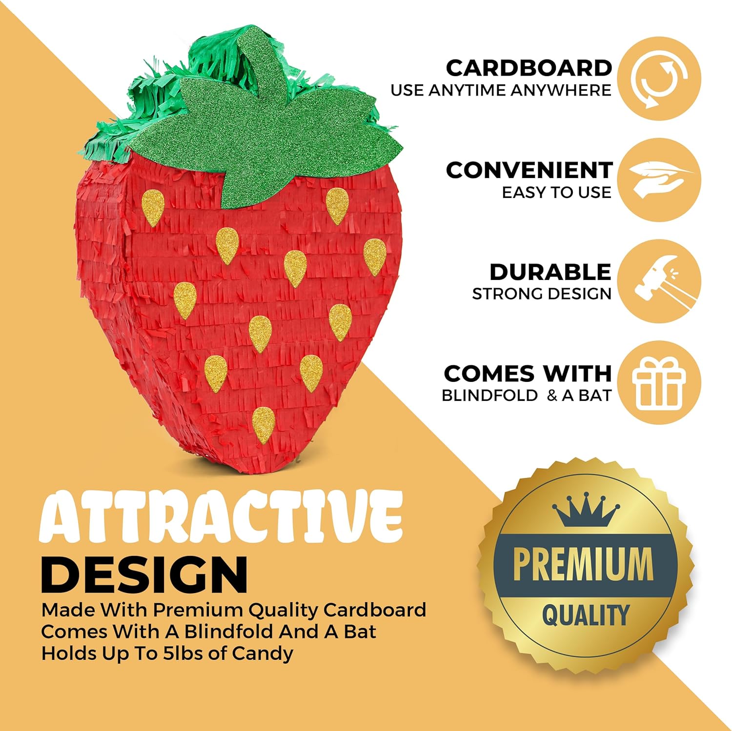 Qualità premium: la pignatta misura 41,9 x 30,5 x 8,9 cm. Realizzato in cartone resistente e di alta qualità. Decorato con carta crespa su carta adesiva, anello in plastica ad alta resistenza per appendere. Il materiale di alta qualità garantisce la sua durata e un aspetto elegante. Facile da riempire: le pignatta sono dotate di un foro prefabbricato e di un robusto anello per appenderlo facilmente. C'è un adesivo di apertura sulla porta di riempimento. È possibile riempire fino a 1,4 kg di pinatas stuffer, riempire frutta, caramelle, cioccolatini, mini giocattoli e appenderlo dove vuoi. Perfetto per una festa divertente: utilizza le pinate a fungo come decorazione per feste o fai fare a turno gli ospiti per cercare di rompere le pignatta per rilasciare tutte le caramelle all'interno. Può essere utilizzata per vari eventi: la nostra adorabile pignatta a forma di fungo è perfetta per essere utilizzata per vari eventi come feste di compleanno, feste scolastiche, feste a tema e altri eventi simili. Sia i bambini che gli adulti potrebbero divertirsi a rompere il piccolo fungo! Garanzia di rimborso senza rischi: ci dedichiamo a fornire ai nostri clienti prodotti della migliore qualità. Tuttavia, se non sei soddisfatto al 100% del prodotto, rimborseremo felicemente il tuo acquisto, senza domande!