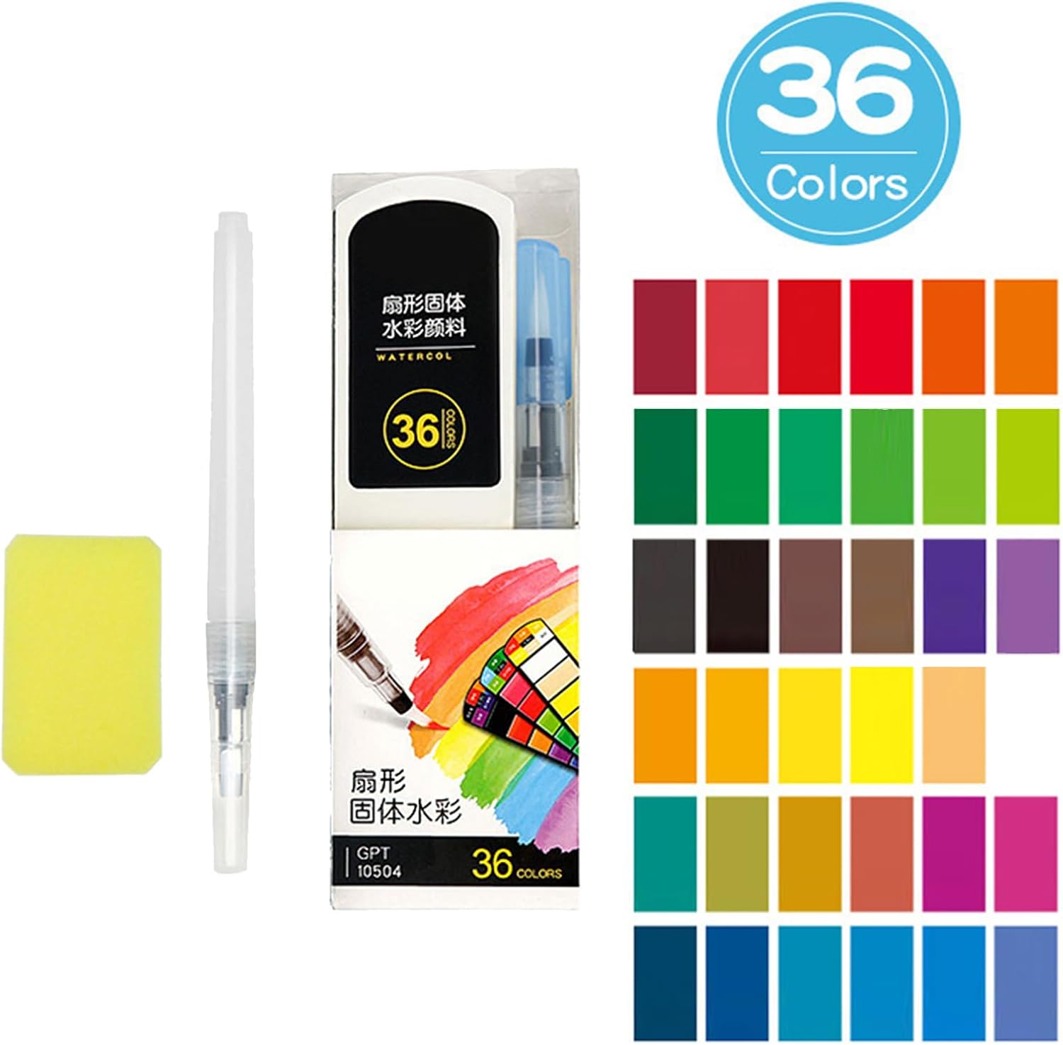 La confezione viene fornita con 24 colori (o 36 colori), penna ad acquerello ricaricabile e spugna. Set di pittura ad acquerello solido portatile molto adatto per pittori professionisti, principianti, artisti, studenti e bambini. Aiuta ad aggiungere alle tue opere d'arte Realizzato con pigmenti solidi acquerelli, sicuro da usare. Ampiamente usato per l'insegnamento in classe, pittura ad acquerello, libri da colorare, progettazione di poster, pittura di paesaggio, schizzi all'aperto, pittura di viaggio. Regalo di vacanza per bambini, studenti, principianti La pittura ad acquerello solida è stata macinata finemente, solubilità rapida in acqua, grande diffusione, colore uniformemente miscelato, elevata resistenza alla luce e alta saturazione. Può essere facilmente mescolato con colori diversi per effetti unici Questa custodia pieghevole portatile per pittura ad acquerello è staccabile, da trasportare e utilizzare. Il solido pigmento acquerello ha un alto grado di colorazione, non sbiadisce facilmente. Sia su carta nera che bianca, molto piena di colori e fornisce un effetto sorprendente Tutto ben organizzato in una custodia in metallo. Leggero e portatile. Funziona alla grande con pennello ad acquerello e spugna per diversi effetti sorprendenti