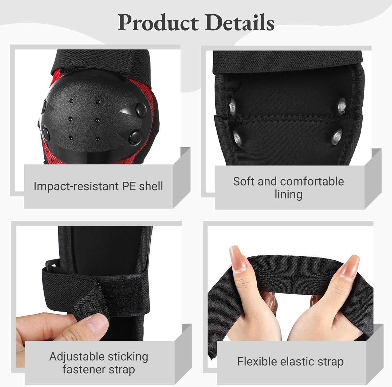 Protezione completa: include ginocchiere e gomitiere per proteggere ginocchia, gomiti e stinchi dagli urti durante il gioco; design flessibile ed ergonomico per la libertà di movimento Assorbente e confortevole: il guscio esterno in PE protegge dalle cadute; l'interno in morbida schiuma offre ammortizzazione per un maggiore comfort Vestibilità regolabile: le cinghie elastiche con chiusure consentono una facile regolazione, garantendo una vestibilità sicura e confortevole Taglia unica adatta 3-12: progettata per adattarsi ai bambini dai 3 ai 12 anni, offrendo protezione per i bambini in crescita durante lo sport attivo Ideale per varie attività: per motocross, ciclismo, skateboard e sci; un regalo premuroso per i bambini per compleanni o vacanze
