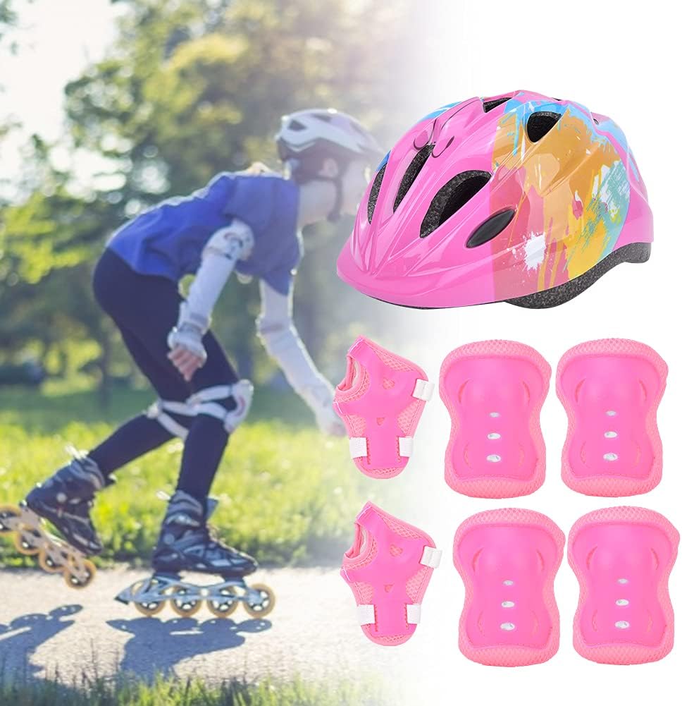 Le ginocchiere per bambini sono dotate di cinghie elastiche regolabili e chiusure adatte a diverse circonferenze del ginocchio. Casco per bambini compatibile con circonferenza della testa di 48 cm-52 cm/18,9-21 pollici, adatto per bambini di 3-8 anni. Scegli in base alla circonferenza della testa. Equipaggiamento protettivo realizzato in ABS di alta qualità e spugna traspirante. Comodo, traspirante e protettivo. Ideale per i bambini. Casco sportivo compatibile per bambini. Adatto a vari sport all'aria aperta come scooter, skateboard, biciclette, scooter. Offre un'elevata protezione. Set di 7 caschi e ginocchiere per bambini, composto da casco, 2 gomitiere, 2 ginocchiere e 2 protezioni per i polsi. Fornisce una protezione completa e completa durante lo sport.
