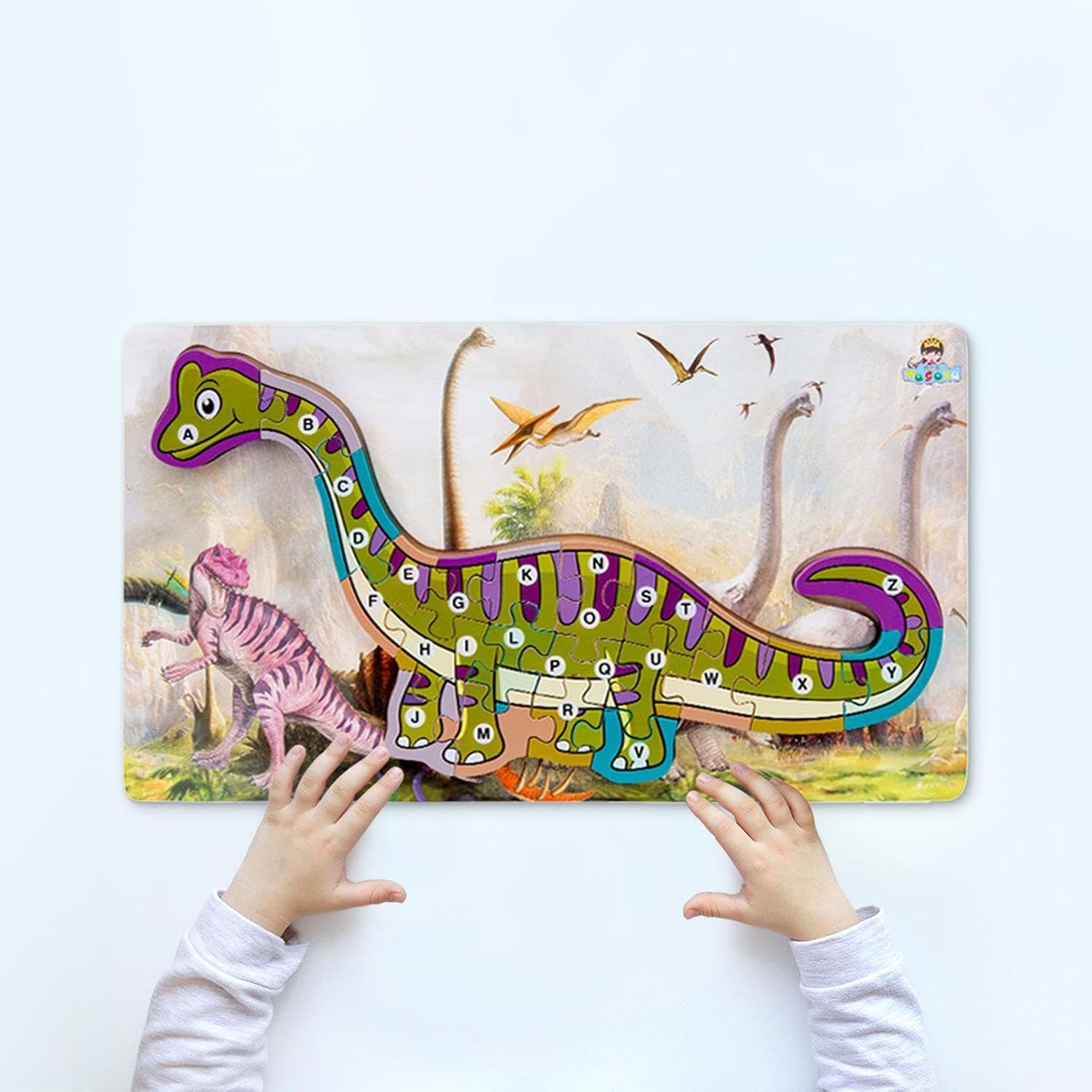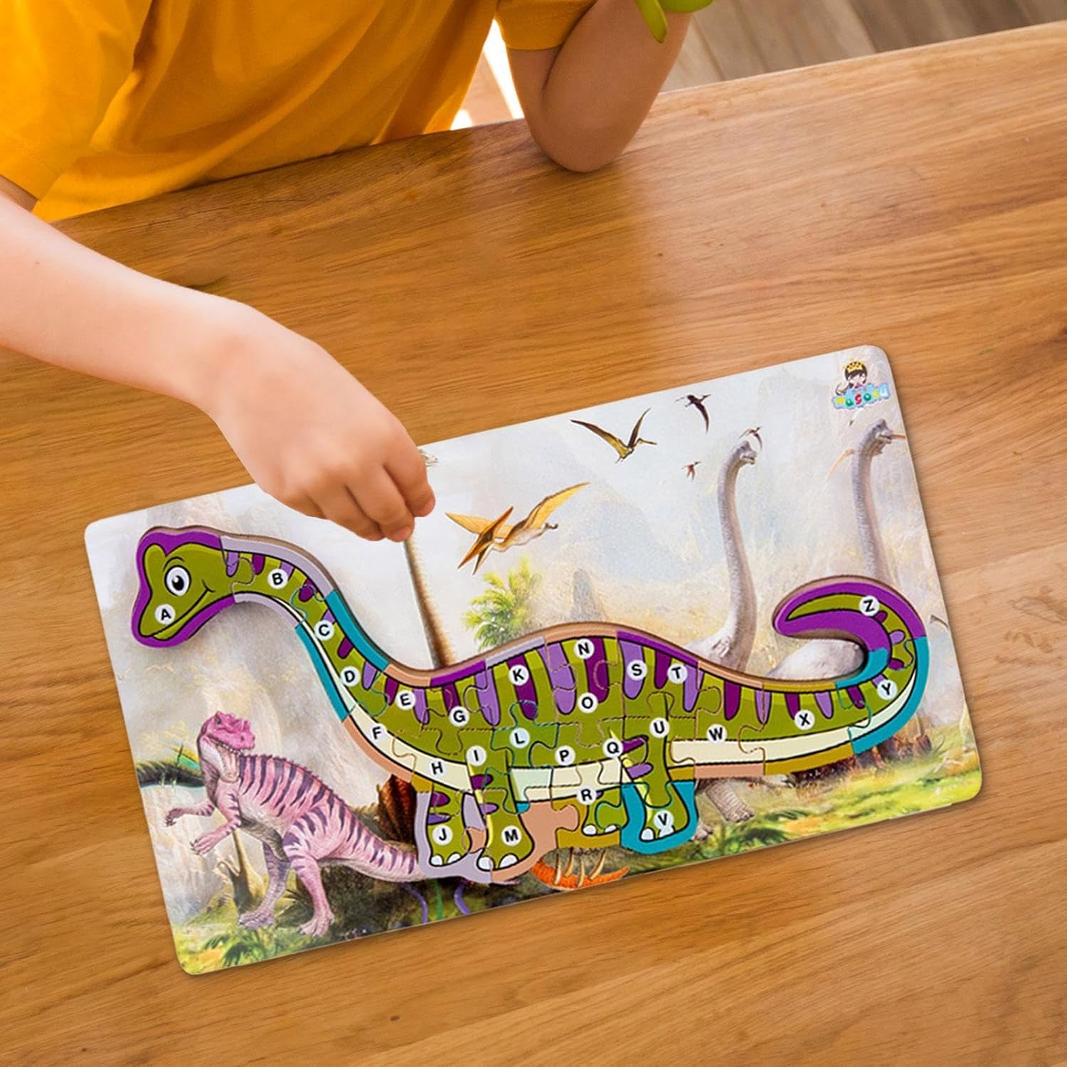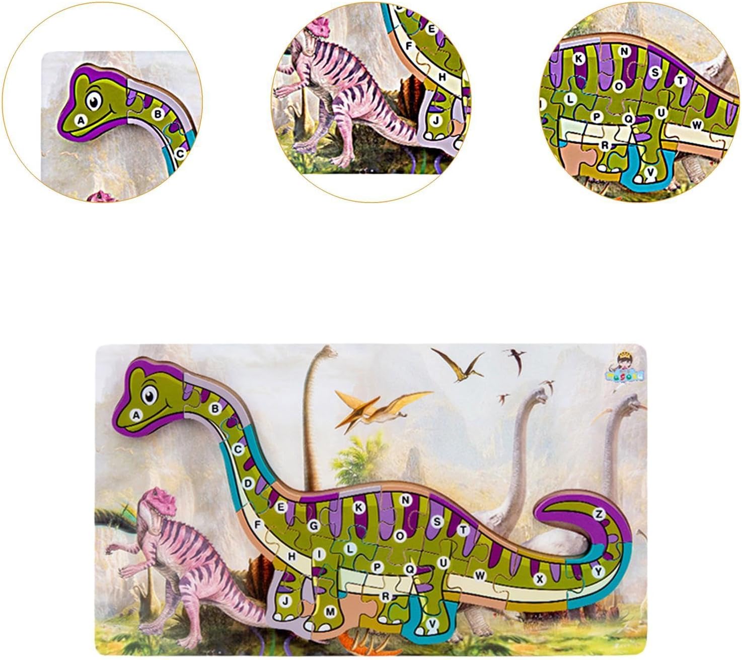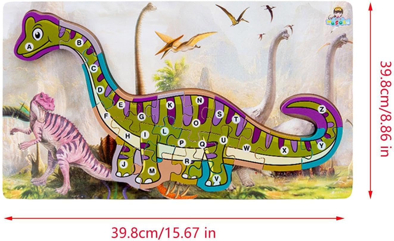 【Dettagli del prodotto】: Il puzzle in legno dei cartoni animati misura 39,8 cm x 22,5 cm x 1,5 cm e un set di puzzle è incluso nell'elenco dei pacchetti. 【Resistenza】: Questo puzzle in legno con dinosauri alfabetici è realizzato in legno di qualità con una superficie liscia e senza sbavature. È ecologico, sicuro e affidabile e adatto ai bambini. 【Design a tema dinosauro】: Il giocattolo educativo per bambini adotta un tema di dinosauri, che è in linea con l'amore dei bambini per e migliora il divertimento e il puzzle. 【Istruzione e divertimento】: Assemblando puzzle a forma di dinosauro, i bambini possono sviluppare la coordinazione occhio-mano, il pensiero logico e le capacità di osservazione. 【Colori vivaci】: Ogni blocco di lettere è dipinto con colori e vivaci per attirare l'attenzione dei bambini e aiutarli a migliorare la loro capacità di riconoscimento dei colori.