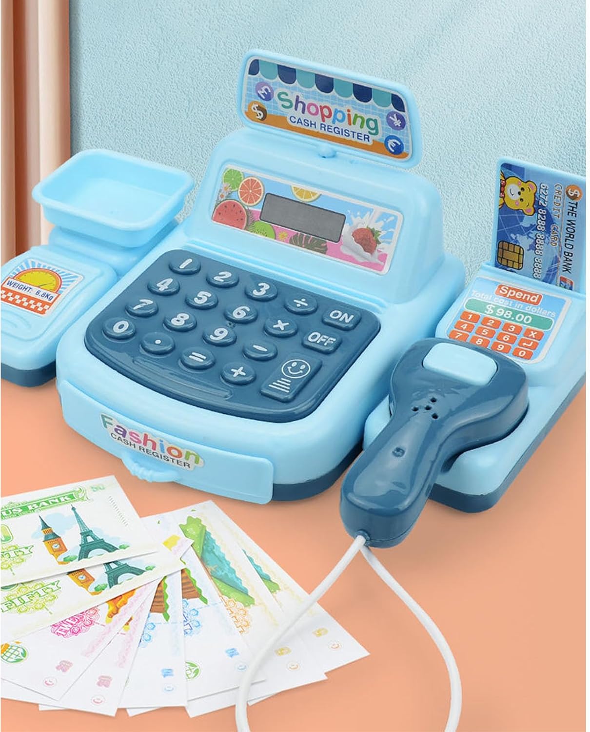 Il design compatto con scomparti organizzati semplifica la pulizia mantenendo il gioco, rendendolo un'aggiunta efficiente nello spazio a qualsiasi stanza dei giochi o asilo nido Ideale per bambini dai 3 anni in su e genitori che cercano un giocattolo educativo che combina l'apprendimento attraverso il gioco, per legami familiari o attività in classe prescolare Dispone di una calcolatrice integrata, uno scanner rimovibile e articoli alimentari per un gioco coinvolgente, incoraggiando il riconoscimento dei numeri, la pratica matematica di base e la narrazione fantasiosa Crea scenari domestici coinvolgenti dalla spesa alla gestione del negozio, completo di suoni di gioco e scansione dei prodotti per autentiche avventure di gioco finte Questo finto giocattolo per registratore di cassa simula una cassa realistica del supermercato promuovendo l'alfabetizzazione finanziaria precoce e le abilità sociali attraverso un gioco di ruolo interattivo con materiali sicuri per i bambini