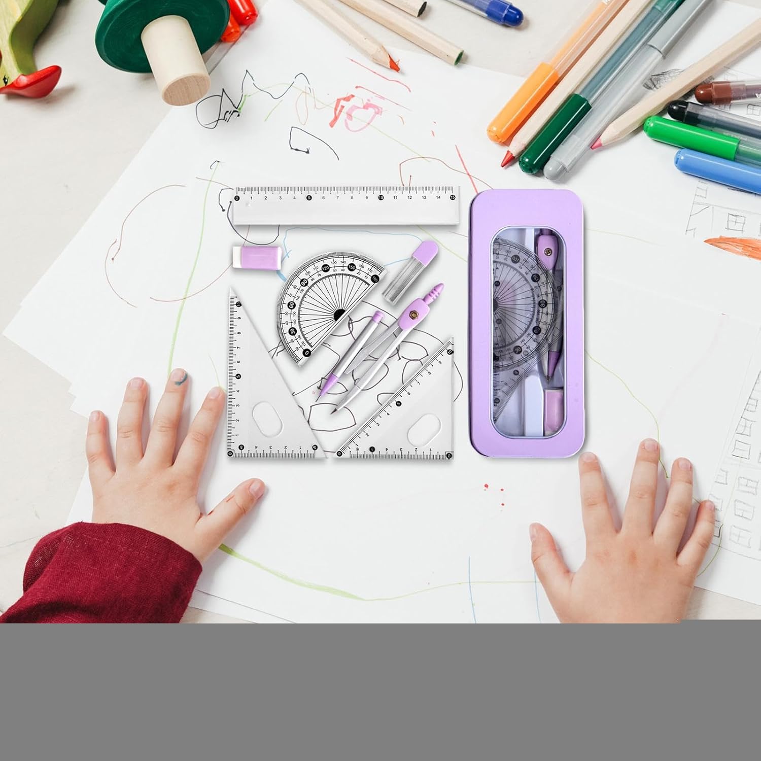Materiale robusto: il nostro set di righelli è realizzato per la massima durata con una miscela di materiali in acciaio inossidabile e PP. La sua struttura di alta qualità garantisce sicurezza e robustezza durature, perfette per tutte le vostre esigenze di misurazione Facile lettura: con numeri chiari e facili da identificare, questo set di righelli garantisce una lettura rapida e accurata, rendendolo facile da usare per tutte le esigenze di misurazione Facile da trasportare: non preoccuparti mai più di perdere danneggiare il tuo set di righelli grazie al nostro design facile da trasportare e alla robusta scatola protettiva in metallo che mantiene tutto a posto, rendendolo perfetto per i viaggi Ampiamente applicabile: adatto a bambini e studenti, questo set di righelli è perfetto per varie attività di disegno, garantendo precisione e facilità in ogni progetto Regalo fantastico: il nostro set di righelli per bambini è la scelta ideale per coloro che desiderano incoraggiare la creatività e la precisione nei progetti scolastici e nell'artigianato, rendendolo un regalo perfetto per compleanni e vacanze