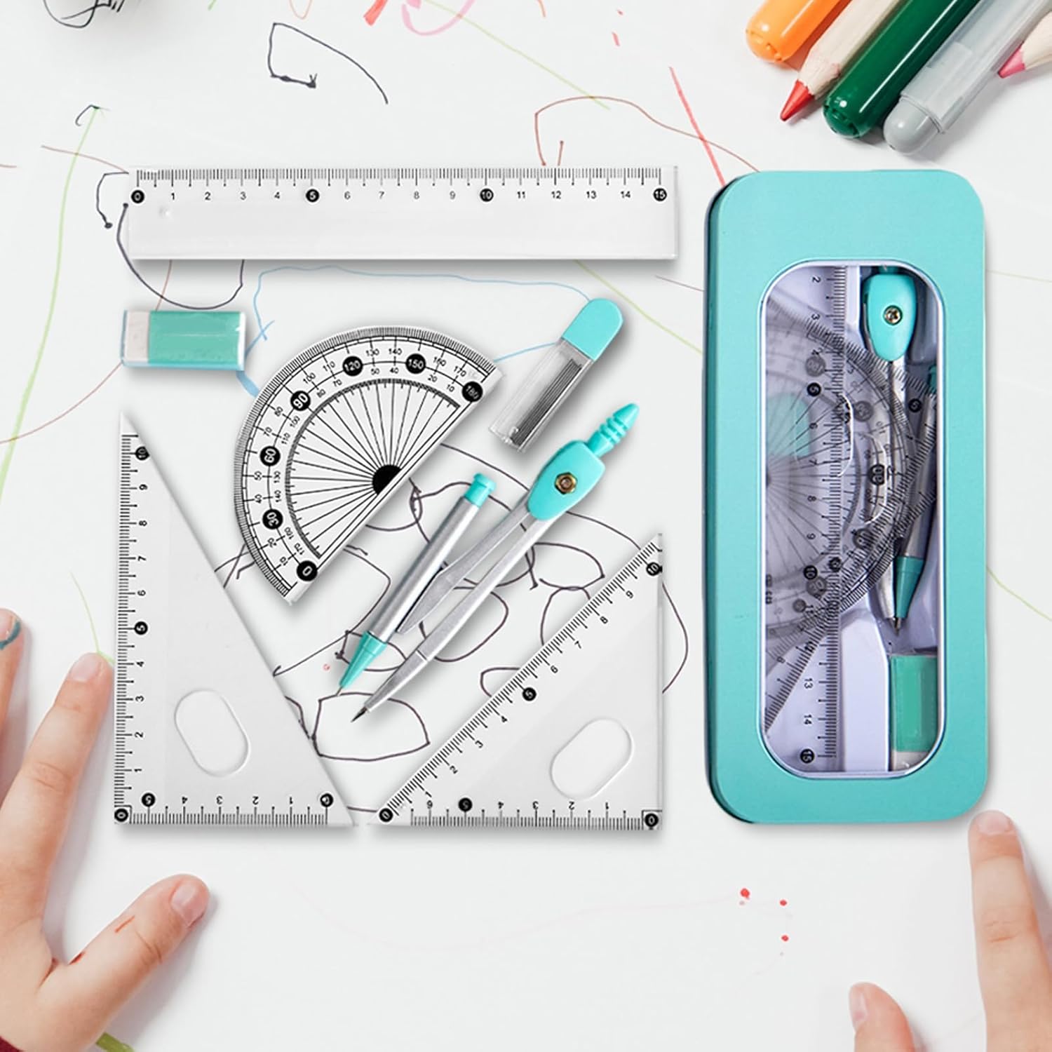 Materiale avanzato: per prestazioni perfette che durano, il nostro set di righelli è realizzato in robusto acciaio inossidabile e materiale PP, fornendo strumento robusto e sicuro per soddisfare le tue esigenze di misurazione Precisione senza sforzo: ottieni misurazioni rapide e precise con i numeri chiari e facili da leggere di questo set di righelli. Identificare le misurazioni non è mai stato così facile Facile da trasportare: non preoccuparti mai più di perdere danneggiare il tuo set di righelli grazie al nostro design facile da trasportare e alla robusta scatola protettiva in metallo che mantiene tutto a posto, rendendolo perfetto per i viaggi Ampiamente applicabile: adatto a bambini e studenti, questo set di righelli è perfetto per varie attività di disegno, garantendo precisione e facilità in ogni progetto Regalo fantastico: il nostro set di righelli per bambini è la scelta ideale per coloro che desiderano incoraggiare la creatività e la precisione nei progetti scolastici e nell'artigianato, rendendolo un regalo perfetto per compleanni e vacanze