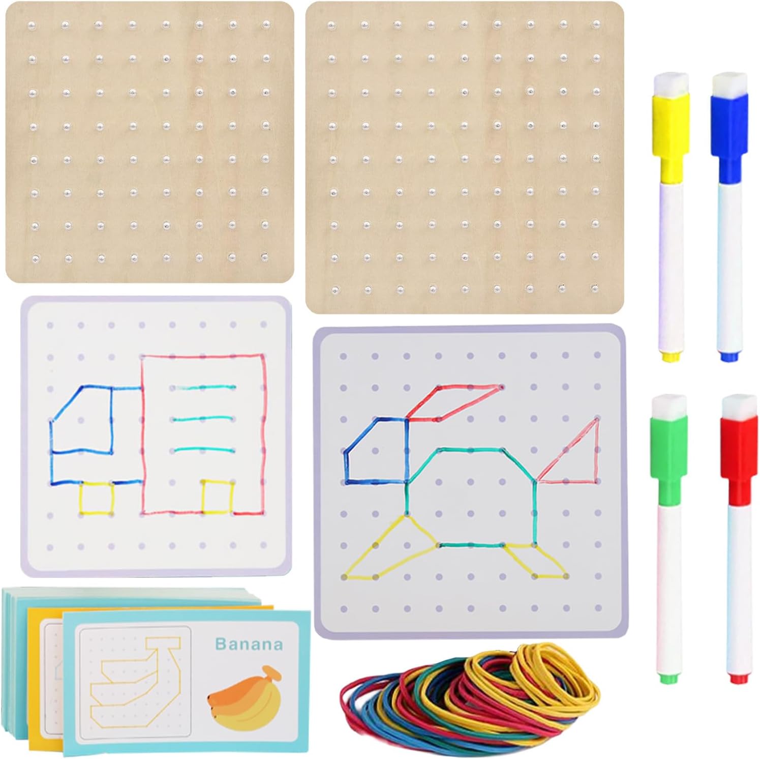 【Sicuro da giocare】 64 chiodi rotondi incorporati di Geo Boards For Classroom, il cinturino in gomma è abbastanza resistente, inoltre il design degli angoli arrotondati garantisce sicurezza al , consentendo ai tuoi bambini di giocare in sicurezza 【Coltiva la motricità fine】 I bambini possono costruire forme diverse sui Geoboard con elastici in base alle carte , che è una buona opportunità per promuovere le capacità motorie e la coordinazione occhio-mano 【Giocattoli per la prima educazione】Poiché Geo Board Set può costruire abilità di differenza di colore e dimensioni nelle forme e aiutare i bambini a imparare a modellare e colorare, questo è un giocattolo per la prima educazione adatto a bambini di età compresa tra 3 e 6 anni, 【Stimolare l'immaginazione】 Rubber Band Board incoraggia i bambini a esplorare vari tipi di forme 2D e motivi geometrici computazionali. Aiuta i bambini a sviluppare il pensiero geometrico astratto. 【Molti usi】 Geoboard in legno ha una vasta gamma di conoscenze di apprendimento, oltre all'apprendimento della geometria in età prescolare, una varietà di oggetti diversi può aiutare i bambini a imparare il vocabolario di oggetti di uso quotidiano, come animali, veicoli, verdure, ecc.