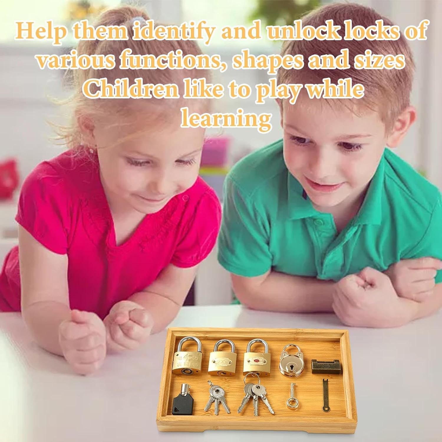 Difficile da perdere: i giocattoli Lock Set Keys hanno una certa garanzia di sicurezza, il lucchetto è più grande e non facile da ingoiare, e le dimensioni della chiave e della serratura sono molto adatte per i bambini da afferrare e giocare, e viene fornita una chiave di ricambio per evitare perdite Spazio sufficiente: le chiavi del set di lucchetti educativi sono fornite con un vassoio in bambù, che offre molto spazio e può contenere molte cose e contiene 5 diverse serrature che possono attirare l'attenzione dei bambini. 【Esercizio di capacità di pensiero indipendente】 Il set di giocattoli con serratura e chiave può allenare la capacità pratica e la capacità di pensiero indipendente dei bambini attraverso le azioni sbloccate dalle chiavi, in modo che possano facilmente entrare nella vita. Istruzione e divertimento: grazie ai giochi di Learning Locks with Keys, i bambini possono migliorare la concentrazione e la coordinazione occhio-mano mentre giocano e crescono felici. Ottima idea regalo: il set di chiavi giocattolo consente ai bambini di concentrarsi su interessanti giochi interattivi con i genitori, la relazione genitore-figlio ed è anche molto adatto come regalo di Natale e regalo di compleanno per bambini.