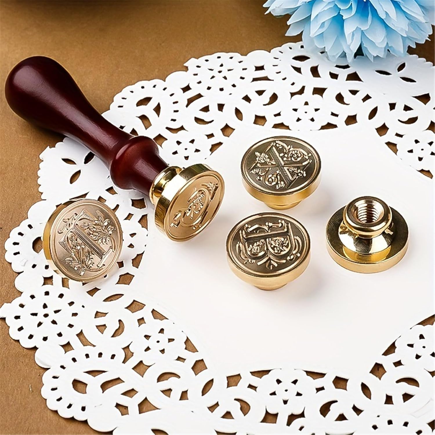 Meraviglioso regalo, dolce amico familiare e te stesso Testa di tenuta in ottone rimovibile, testa del timbro rimovibile. facile da cambiare e installare Ampie applicazioni, adatte per abbellire inviti di nozze e feste, biglietti di auguri, biglietti di Natale, buste, lettere, album di ritagli, confezioni regalo, bottiglie. e utilizzato per sigillare documenti e informazioni private, può proteggere le informazioni private Materiale per timbri per cere, realizzato con manico in legno e testa in ottone, facile da usare e trasparente, la testa del timbro è liscia e lucida, non si attacca Timbro sigillante con lettere dell'alfabeto, il kit di timbri iniziali contiene 26 alfabeti, ti dà sensazioni piacevoli e squisite e aggiunge più attrattiva alla tua decorazione