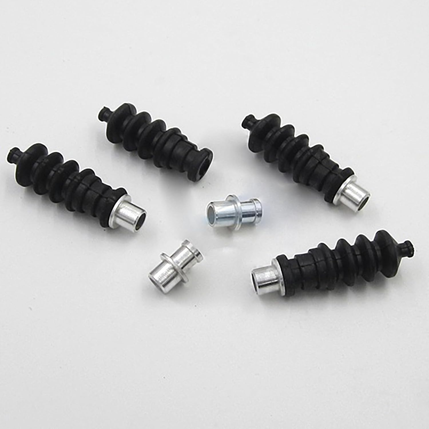 La confezione include: soffietto impermeabile da 5 pezzi con basi in alluminio. Dimensioni del soffietto: diametro esterno 13 mm, foro grande 5 mm, foro piccolo 2 mm, lunghezza totale 37 mm. Dimensioni base in alluminio: diametro esterno connessione 7 mm, foro base 5,5 mm, lunghezza totale 14 mm. Lunghezza combinata: soffietto + base in alluminio. Lunghezza totale 44 mm. Applicazioni: Perfetto for aste di comando di modelli di navi e compartimenti di apparecchiature che richiedono una sigillatura impermeabile.