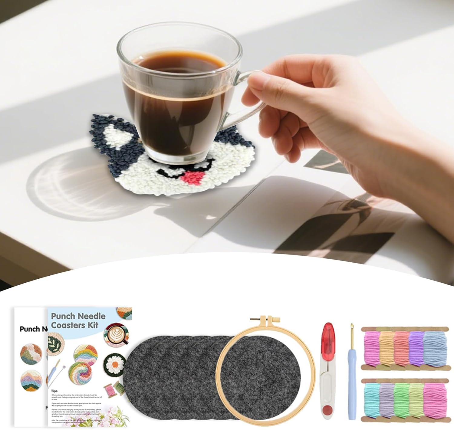 Divertimento creativo accessibile: non è richiesta alcuna esperienza precedente con questo kit di sottobicchieri; include tutti gli strumenti e i materiali indispensabili per i principianti, con una guida illustrativa passo dopo passo e un sistema di aghi perforatore facile da usare per una creatività senza soluzione di continuità Ispirazione creativa: con sei adorabili disegni di animali, tra cui cani e gatti, questo kit incoraggia la creazione di sottobicchieri speciali arricchiti con motivi deliziosi e gioiosi Kit perfetto per lavorare: il kit completo di sottobicchiere con ago da punzonatura include feltro e filo da ricamo; non sono necessari strumenti aggiuntivi, con materiali robusti per una comodità pronta all'uso Ideale per occasioni speciali: combinando deliziosi disegni a tema animale domestico con un processo di lavorazione rilassante, questo kit di sottobicchieri con ago perforato è ideale per creare oggetti fatti a mano, rendendolo una meravigliosa scelta regalo per compleanni, vacanze Usi versatili: combina fascino estetico con l'uso pratico attraverso il materiale in feltro resistente al calore, aggiungendo un tocco accogliente decorativo proteggendo i piani del tavolo dai danni del calore e servendo perfettamente scopi funzionali e decorativi