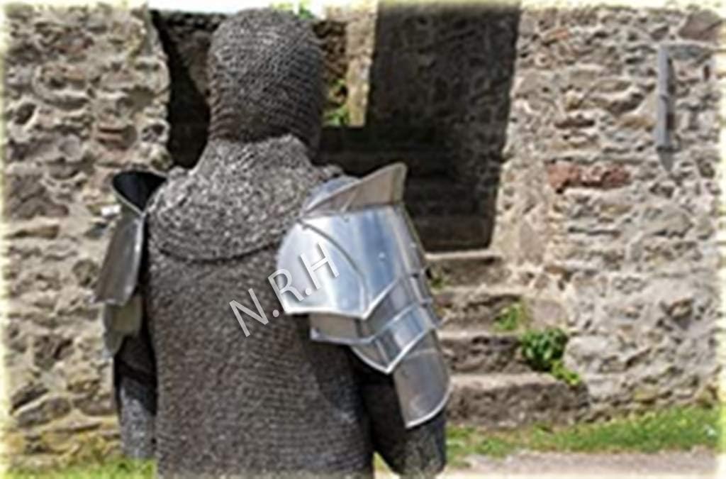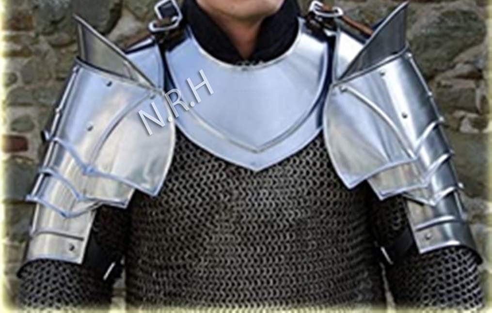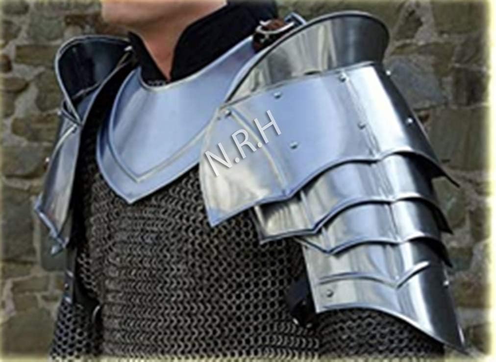 Set di armature per spalle medievali con spallaccio da guerriero d'acciaio Taglia: adulto Colore: argento Materiale: acciaio calibro 18