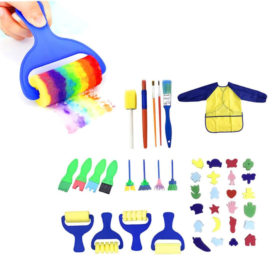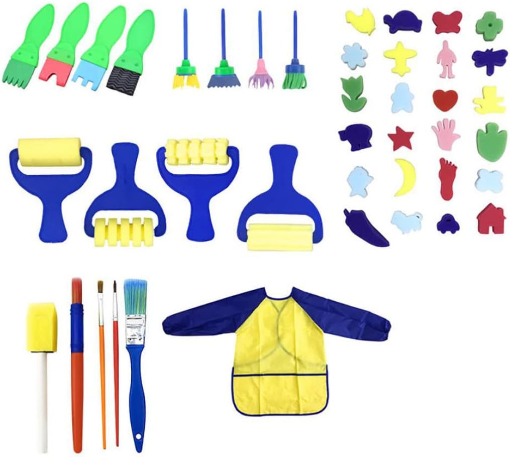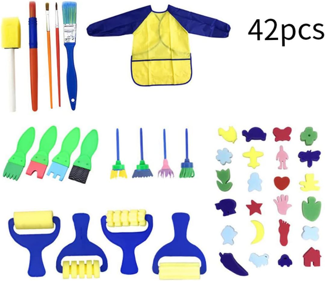 Capacità di sviluppo: il set di spugne da disegno per bambini può sviluppare la capacità di riconoscimento di colori e forme, oltre a rafforzare la coordinazione occhio-mano e la capacità di presa Materiale morbido e sicuro: realizzato in plastica atossica, legno, spugna, panno impermeabile in EVA, le spugne per pittura per bambini sono facili da padroneggiare e controllare per i bambini Lavabili e riutilizzabili: questi pennelli in schiuma per l'apprendimento precoce sono facili da pulire e riutilizzabili..Viene fornito con un grembiule da pittura impermeabile per proteggere i vestiti dei bambini dallo sporco. Perfetto apprendimento precoce: i tuoi bambini possono utilizzare queste diverse forme e dimensioni di spugne per dipingere per bambini per disegnare, creare progetti artigianali fai-da-te, ispirando l'immaginazione e la creatività dei bambini Riceverai: i kit di pittura per l'apprendimento precoce hanno un totale di 42 strumenti..Include 1 grembiule da pittura, 24 modelli combinati, 4 pennelli a rullo in spugna, 4 pennelli per pittura a fiori, 4 pennelli piatti in spugna e 5 pennelli da pittura