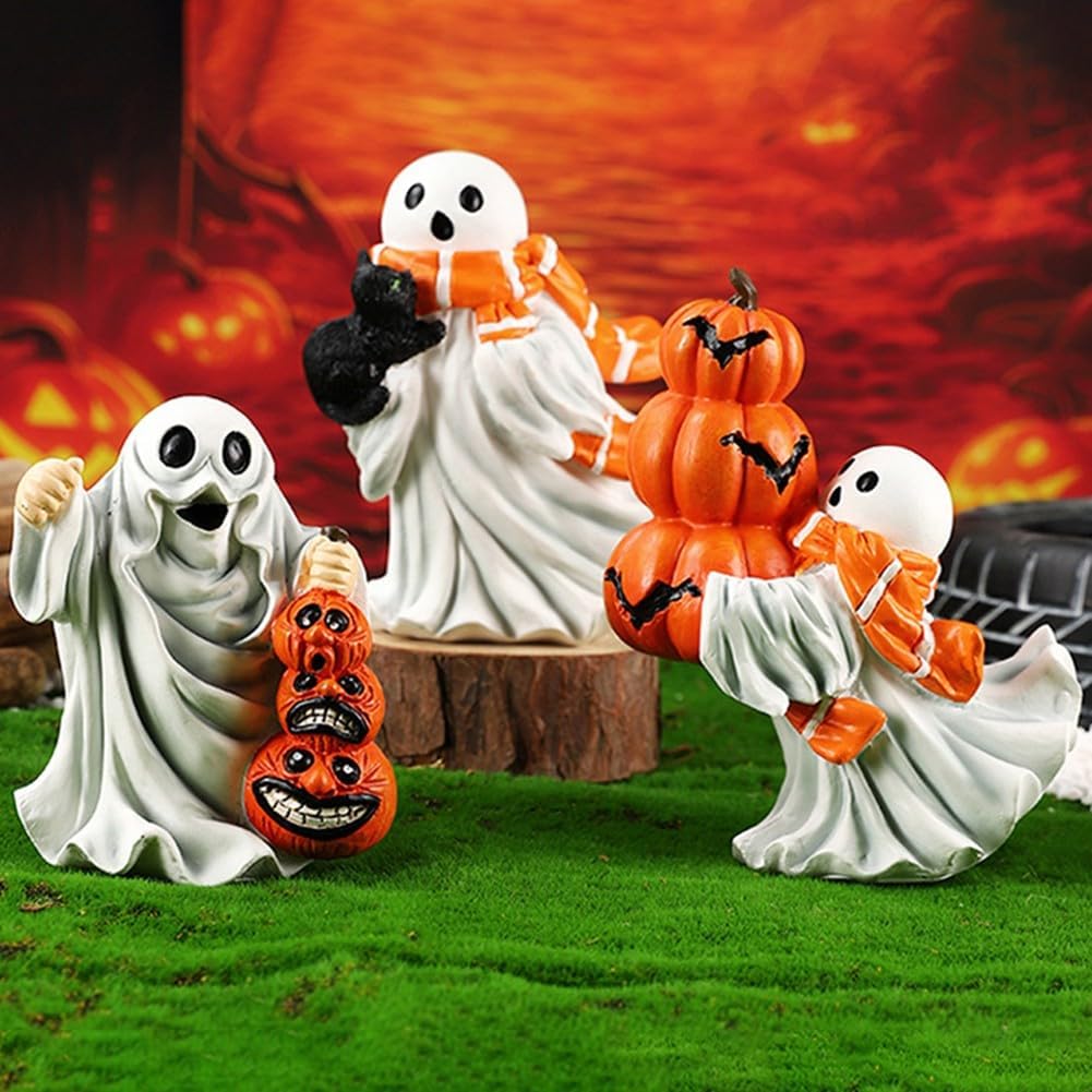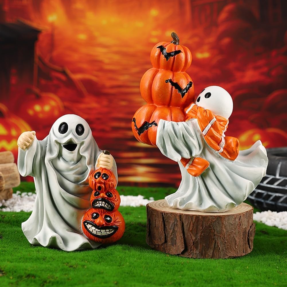 Design affascinante: questo ornamento per fantasmi di Halloween presenta un'adorabile statuetta di fantasmi abbinata a una stravagante statua di gatto nero, aggiungendo un tocco giocoso al tuo arredamento festivo. Materiale robusto: realizzate in resina, queste figurine sono costruite per resistere a varie condizioni atmosferiche, rendendole adatte sia per esposizioni interne che esterne. Opzioni di visualizzazione: perfette per caminetti, mensole o tavoli, queste decorazioni spettrali migliorano il tuo tema di Halloween completando perfettamente altri decorazioni stagionali. Regalo premuroso: questo set funge da pezzo decorativo unico che amici e familiari che amano Halloween apprezzeranno anno dopo anno. [Atmosfera spettrale] Crea un'atmosfera incantevole con queste deliziose statuette, la tua casa si distingue durante la stagione spettrale e impressiona gli ospiti.