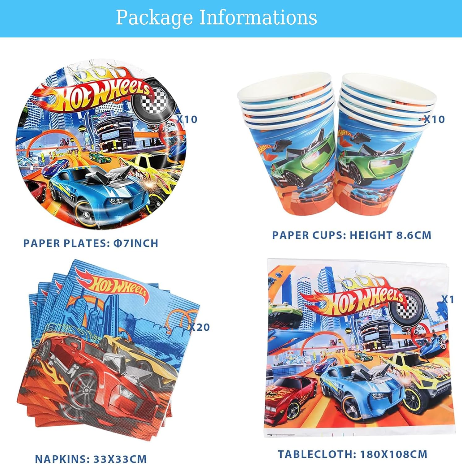 Set di stoviglie per feste per auto: il set di stoviglie da festa contiene 10 piatti da dessert da 7 pollici, 10 bicchieri di carta, 20 tovaglioli, 1 tovaglia. Adatto per una piccola festa con 10 persone. Materiale di alta qualità: il nostro set di stoviglie per auto da corsa per feste di compleanno è realizzato in carta di qualità alimentare, robusta e durevole e molto adatta per dessert, cene di festa e bevande. Nota: il piatto e la tazza non possono essere messi nel microonde. Design a tema auto: il set di stoviglie per auto è colorato e carino, molti elementi per auto su piatti e bicchieri di cartone. che stimolano l'immaginazione dei bambini e creano un'atmosfera emozionante. Per creare la festa perfetta con una forte atmosfera tematica per i bambini amanti delle auto. Facile da usare: le stoviglie decorative di compleanno sono leggere e facili da trasportare, anche se all'aria aperta, possono essere facilmente decorate e possono essere pulite rapidamente dopo che la festa è finita. Puoi trascorrere più tempo con la famiglia e gli amici e goditi bene la tua festa. Ampia gamma di utilizzi: le nostre stoviglie decorative per auto per tutti i tipi di feste a tema, feste di compleanno, eventi aziendali, feste scolastiche, eventi all'aperto, feste in spiaggia, barbecue, feste di famiglia, ecc. Con questo perfetto accessorio per posate da festa, la tua festa sarà più colorata e attraente.