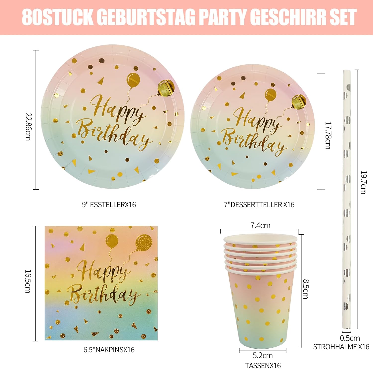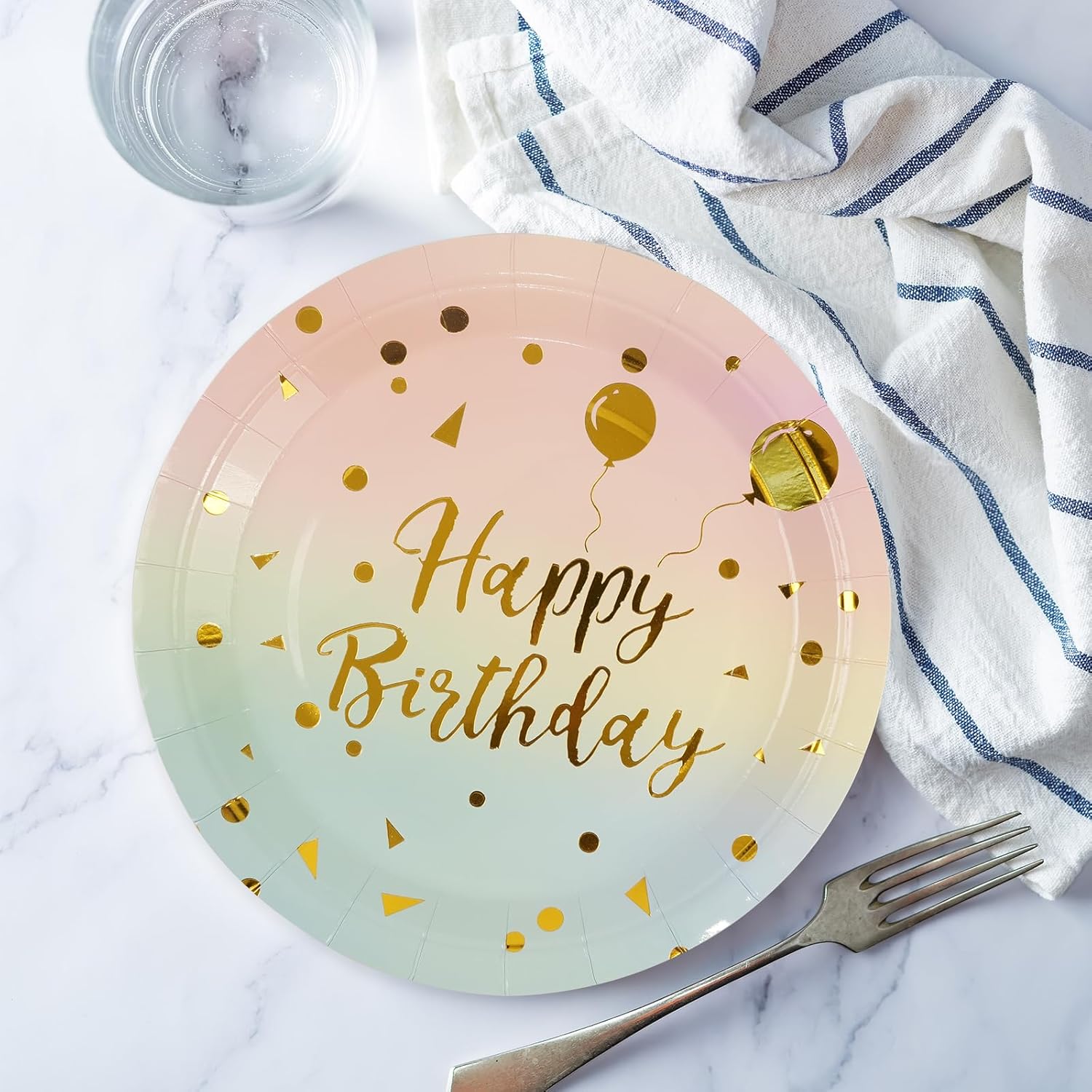 🎈 【Set completo di utensili per feste di compleanno】: il nostro set di utensili dorati per feste di compleanno include tutto il necessario per una riunione di 16 ospiti, inclusi 16 utensili (23 cm), 16 piatti da dessert (18 cm), 16 fazzoletti (16,5 cm) e 16 tazze e cannucce. Molto adatto per la tua festa di compleanno. La sfumatura rende i nostri piatti più eleganti e l'oro li fa brillare. La scelta perfetta per una festa di buon compleanno. 🥳 【Materiale di alta qualità】: fai risplendere la tua festa con il kit di stoviglie per la festa di compleanno. I nostri piatti, tovaglioli, tazze e cannucce sono realizzati in carta robusta di alta qualità, quindi puoi usarli con sicurezza. Il motivo stampato è uno specifico tema scintillante per la festa di compleanno e il motivo è stampato molto bene per offrirti una bella esperienza di festa di compleanno. 🎁【Progettato appositamente per il tema del compleanno】: dai inizio alla festa con il nostro design Happy Birthday! Il colore di questo set di piatti di compleanno è realizzato in materiale cartaceo di alta qualità e presenta gli auguri di compleanno "Happy Birthday" stampati sugli elementi. Piatti e tovaglioli di carta per feste di compleanno sono un successo tra uomini e donne, quindi saranno un'ottima decorazione per la tua festa di compleanno 🍾 [Decorazione squisita per la festa]: gli utensili per il compleanno possono essere utilizzati per feste di compleanno legate all'età, adatti a uomini e donne dai 30 agli 80 anni. Tutte le età dovrebbero essere prese in considerazione. Questo prodotto completa le altre decorazioni, evidenzia il tema della festa e festeggia insieme il tuo compleanno. Ideale per gli amici indoor, anche in giardino. 🎂【Facile da pulire e risparmia tempo】: Potrai organizzare una festa di compleanno a tema blu spensierata perché non dovrai preoccuparti di passare molto tempo a pulire dopo la festa. Basta buttarli via e risparmierai più tempo e fatica.