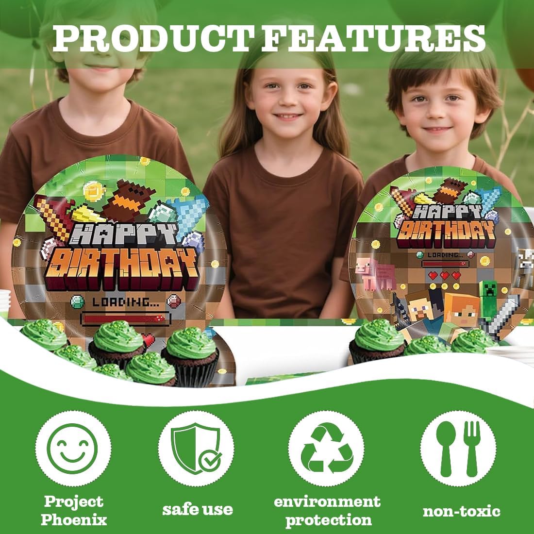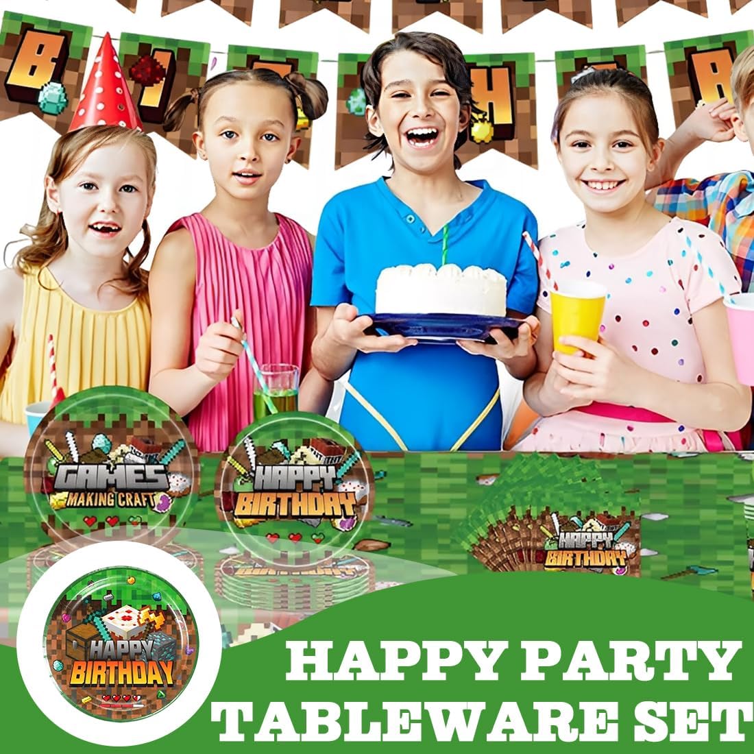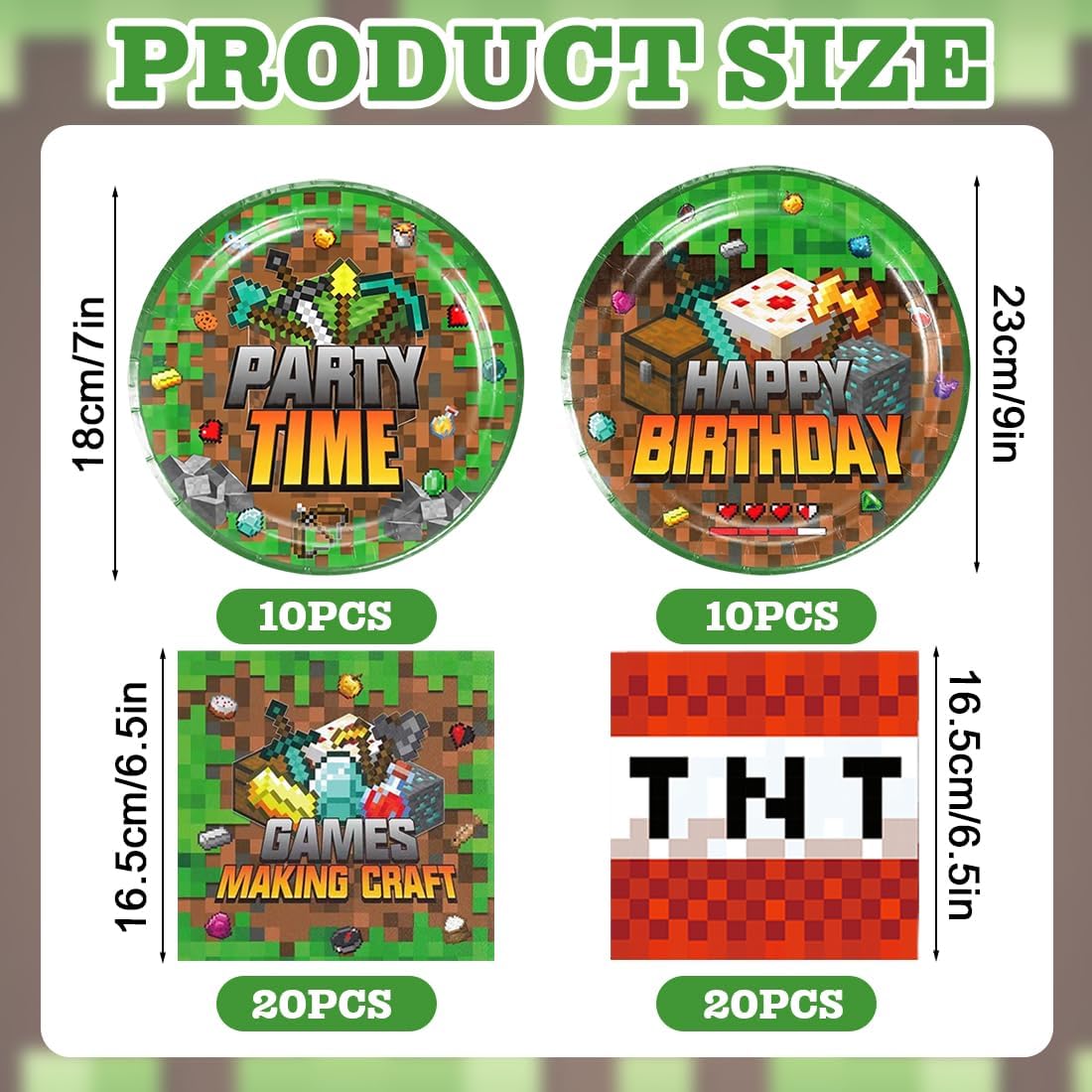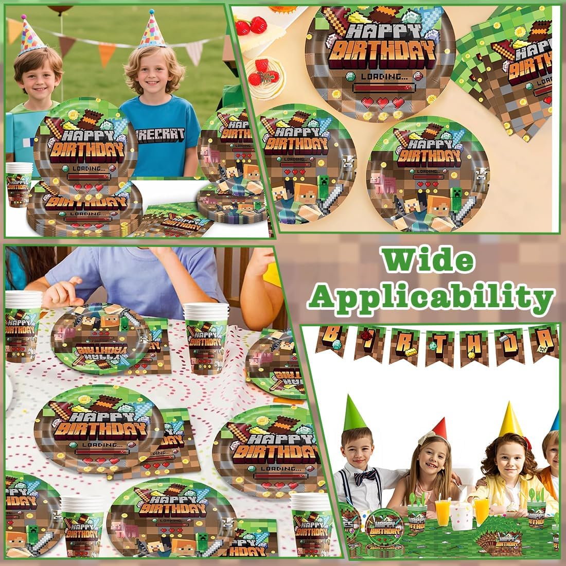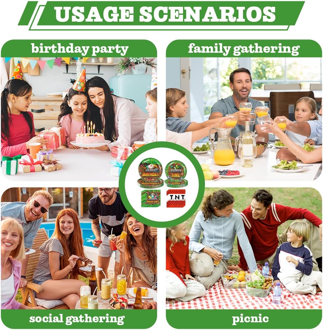 Set di stoviglie per feste: include 10 piatti da 23 cm, 10 piatti da 18 cm e 40 tovaglioli. Questo set di piatti decorativi per feste di compleanno può ospitare 10 persone e soddisfa tutte le tue esigenze. Materiali di alta qualità e affidabili: il set di stoviglie per feste di compleanno per bambini è realizzato in carta biodegradabile. Materiali riutilizzabili ed ecologici. Il cake topper è realizzato con squisita fattura, colori vivaci e dolcezza, rendendolo un accessorio indispensabile per le decorazioni delle feste. Design unico: amati dai bambini di tutte le età, i nostri piatti e tovaglioli di carta presentano adorabili disegni di cartoni animati che sembrano assolutamente magici. Facile da pulire: il set di articoli per feste contiene tutto il necessario, così non dovrai cercare separatamente le posate giuste. Una volta finita la festa, potrai semplicemente buttarle via, senza contaminarle, risparmiandoti il fastidio di dover pulire eventuali fuoriuscite e riordinare. Ampia gamma di utilizzi: il set di stoviglie a tema gioco è la decorazione perfetta per feste di compleanno o altre occasioni festive. Che si tratti di una festa di compleanno per bambini, un baby shower, una riunione di famiglia, ecc., si abbinerà perfettamente agli altri articoli per feste a tema gioco e renderà la tua festa ancora più festosa!