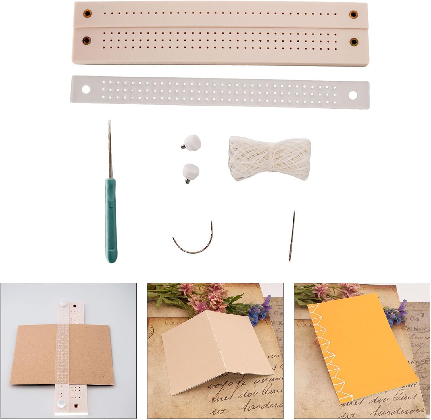 Questo set di materiali di rilegatura è un'aggiunta essenziale a qualsiasi progetto artigianale, poiché soddisfa tutte le tue esigenze di rilegatura. Realizzato in legno, garantisce un utilizzo a lungo termine. Questo strumento di rilegatura è molto adatto per diversi formati di carta Ampiamente usato per scrapbooking, progetti di rilegatura, creazione di album fotografici, quaderni, diari, artigianato, progetti di artigianato in classe o organizzazione di documenti d'ufficio, permettendoti di goderti facilmente un progetto creativo Rilegatura con il nostro strumento di perforazione manuale portatile, per migliorare il tuo progetto di rilegatura e diario Molto adatto per gli amanti dei diari, gli appassionati di scrapbooking, studenti, insegnanti e chiunque abbia una passione per l'artigianato fatto a mano