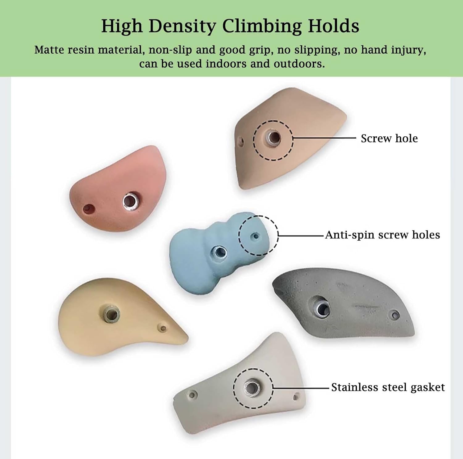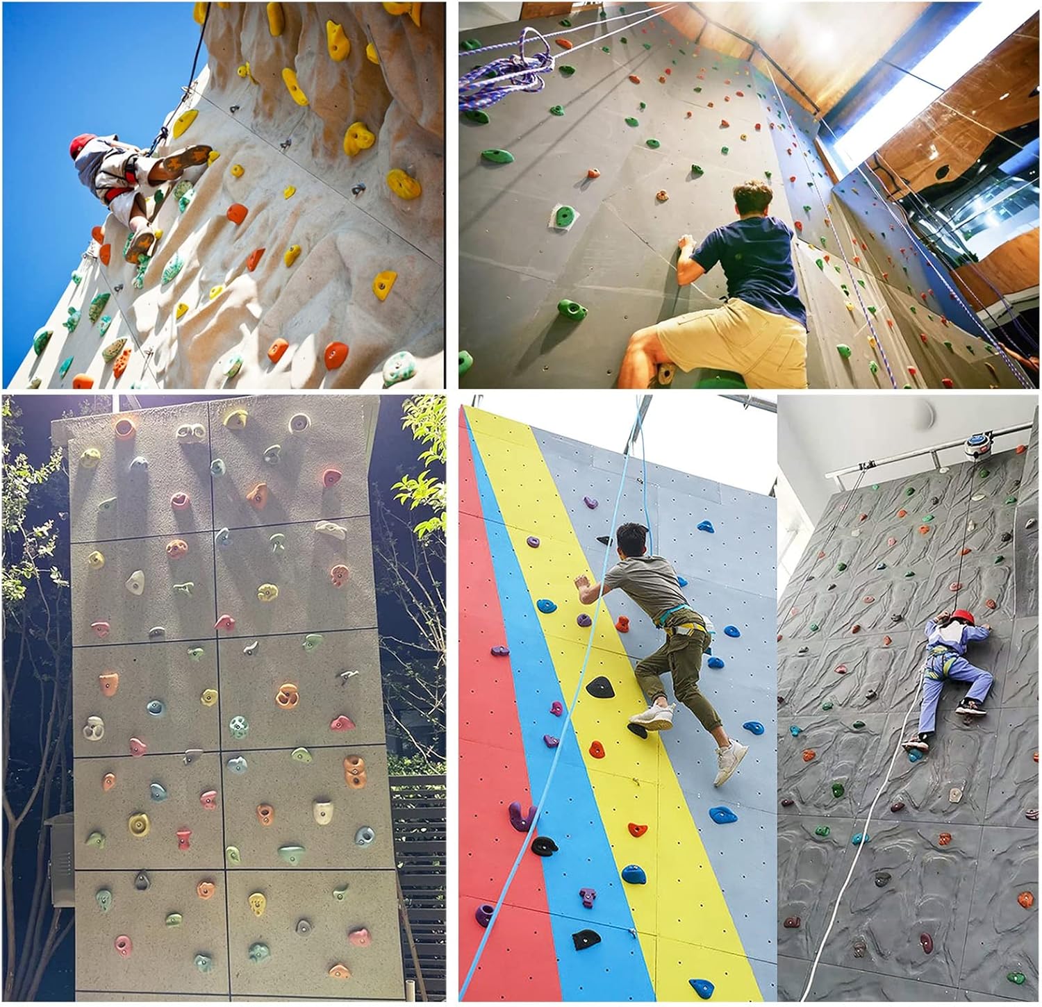 Supporti per arrampicata in resina di alta qualità: realizzati in resina di alta qualità, questi supporti da arrampicata sono ecologici, durevoli e resistenti alle intemperie, adatti sia per uso interno che esterno. Supporta fino a 150 kg, garantendo sicurezza e longevità. (Stili e colori variano.) Parete da arrampicata fai da te per bambini: perfetta per creare una parete da arrampicata personalizzata che migliora le capacità motorie dei bambini, l'equilibrio, la flessibilità e la coordinazione. Offre un modo divertente per promuovere la salute fisica e mentale attraverso attività di arrampicata. Design ergonomico del manico: presenta manici irregolari con bordi lisci e una texture satinata per una presa sicura. Adatto sia per adulti che per bambini, garantendo un'esperienza di arrampicata confortevole e sicura senza compromettere la sensazione. Semplice processo di installazione: viene fornito completo di viti di montaggio per ogni staffa da arrampicata, consentendo una configurazione rapida e facile. Ideale per creare aree di gioco coinvolgenti e impegnative in pochissimo tempo. Uso versatile: ideale per vari ambienti tra cui stanze dei bambini, giardini, pareti rocciose, case sugli alberi, parchi giochi all'aperto, altalene residenziali, percorsi ad ostacoli e palestre nella giungla. Migliora qualsiasi spazio con un'emozionante esperienza di arrampicata su roccia.