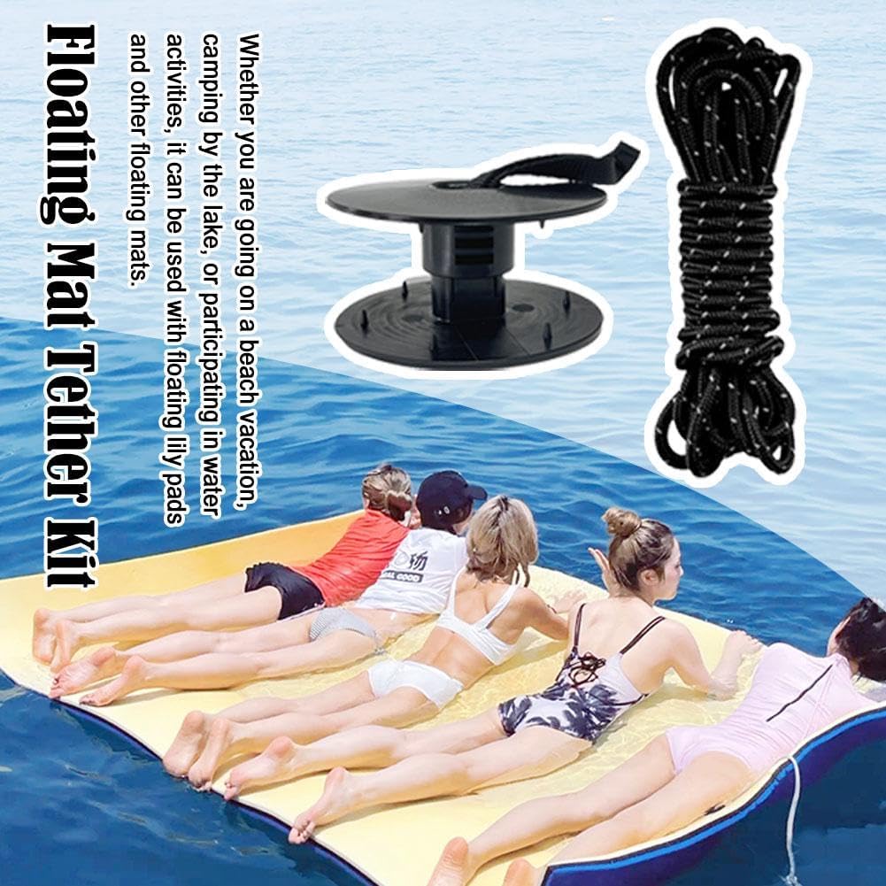 [Kit di fissaggio completo per tappetini da nuoto] Tutto ciò di cui hai bisogno in un unico set! Questo set include un robusto set di occhielli per tappetini da nuoto e una corda da 3,6 metri, tutto per un'installazione rapida e senza problemi. Perfetto per fissare il tappetino ad acqua a banchine, barche o ancore. [La sicurezza prima di tutto: niente più tappetini alla guida] Mantenete il vostro tappetino da bagno saldamente in posizione. Il nostro kit di fissaggio previene l'aborto indesiderato e garantisce un'esperienza più sicura per voi e la vostra famiglia mentre nuotate, rilassatevi o giocate in acqua. [Materiali robusti e resistenti alle intemperie] Durevole! Gli occhielli sono realizzati in plastica resistente e la corda è realizzata in polipropilene resistente con fibbie in metallo rinforzate. Resistente al sole, all'acqua salata e all'usura per molti anni. Facile da montare. Non sono necessari attrezzi. Basta praticare un foro nel tappetino (tabella delle taglie inclusa), seguire le istruzioni e lasciare che l'occhiello si incastri in posizione. (Nota: gli occhielli sono fissati in modo permanente dopo l'installazione) Portatile e versatile per qualsiasi avventura: leggero e compatto, facile da mettere nella borsa da spiaggia o sullo scaffale della barca! Compatibile con la maggior parte dei materassini da nuoto, ninfee e lettini. Ideale per laghi, piscine, fiumi o gite al mare. Facile da riporre e trasportare. Che si tratti di vacanze in spiaggia, campeggio al lago o sport acquatici, può essere utilizzato con tappetini da nuoto e altri lettini.