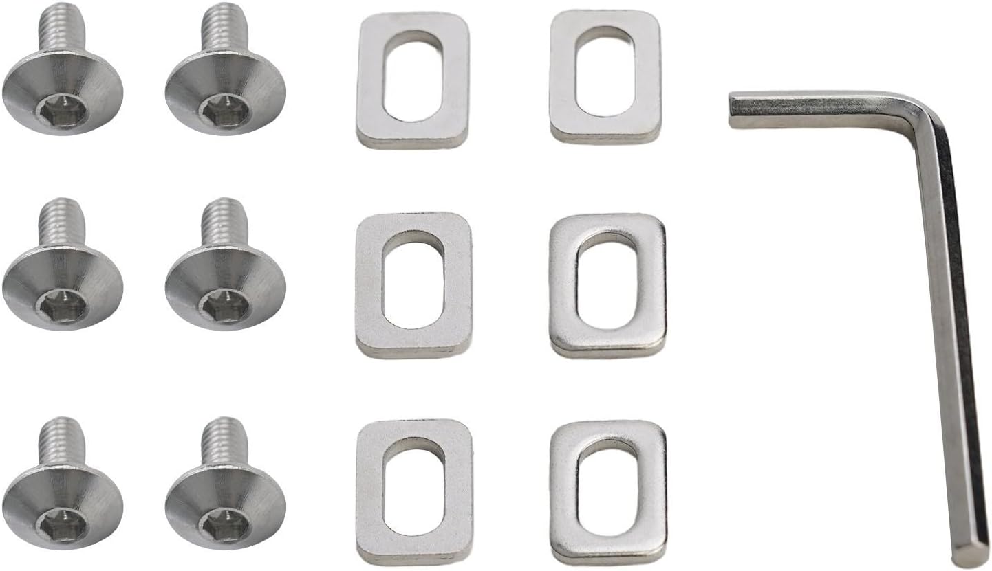 Pratici: questi tacchetti per pedali per bici da strada sono realizzati in acciaio di alta qualità, durata e praticità in ogni uso. Set completo: ogni confezione include 6 rondelle e 6 viti M5, fornendo tutto il necessario per un'installazione sicura dei pedali della bicicletta. Materiale di alta qualità: realizzati in acciaio di alta qualità, questi tacchetti e viti sono costruiti per durare, permettendoti di godere di prestazioni di lunga durata sulla tua bici da strada. Facile installazione: con la chiave inclusa, è possibile installare facilmente queste tacchette per pedali, rendendole comode per i ciclisti di tutti i livelli di abilità. Compatibilità: progettati per adattarsi ai pedali, questi tacchetti e viti offrono una soluzione versatile per gli appassionati di bici da strada di tutti i livelli.