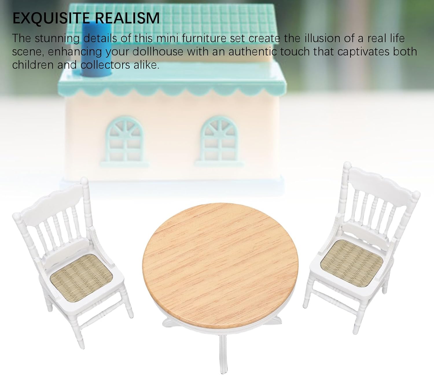 Artigianato di qualità: con un design intricato dei dettagli e un aspetto realistico, questo set di tavolo e sedie per casa delle bambole in scala 1:12 è costruito per durare, portando un'esperienza realistica alle impostazioni in miniatura. Squisito realismo: gli splendidi dettagli di questo mini set di mobili creano l'illusione di una scena di vita reale, migliorando la tua casa delle bambole con un tocco autentico che affascina sia i bambini che i collezionisti. LEGNO: realizzato in legno di qualità, questo mini mobile da pranzo non è solo splendidamente realizzato, ma anche incredibilmente robusto, rendendolo un pezzo decorativo per salotti o ideale per case delle bambole in scala 1/12. Decorazione versatile: questo elegante e robusto set di mobili in miniatura si adatta perfettamente a tutti i tipi di micro mobili e decorazioni per la casa, arricchendo qualsiasi casa delle bambole o scena in miniatura con il suo affascinante fascino estetico. Meraviglioso regalo: aggiungi un tocco di qualità e unicità al tuo regalo con questo squisito set di tavolo da pranzo e sedie, rendendolo una meravigliosa scelta regalo di Natale o di compleanno per ragazze, figlie e ragazzi che amano le bambole.