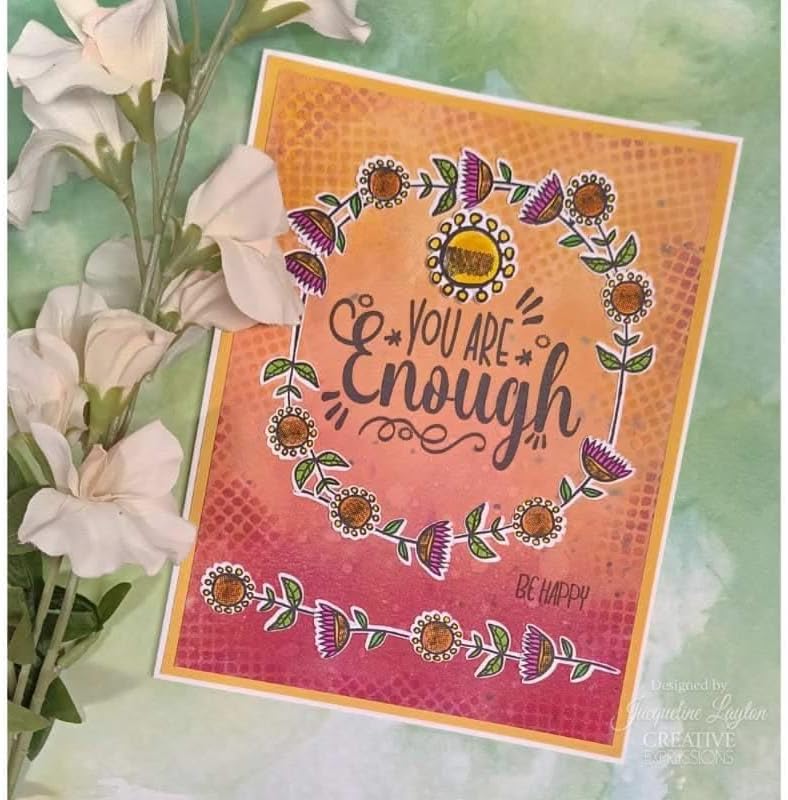 8 timbri trasparenti con messaggi positivi disegnati a mano e scarabocchi felici, realizzati nel Regno Unito