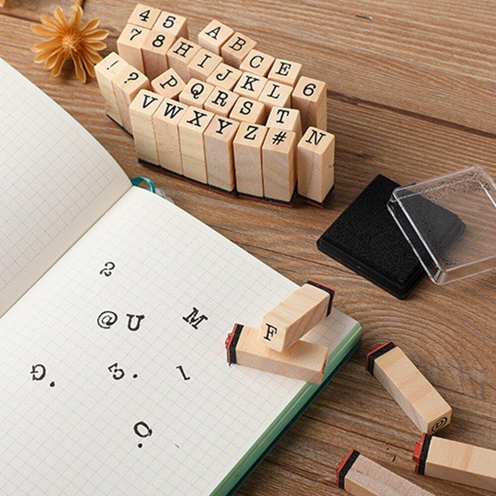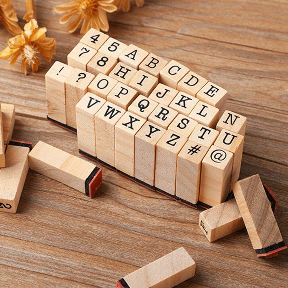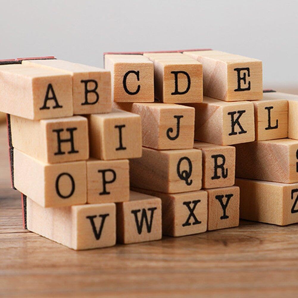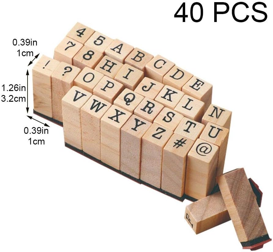 Set di timbri di gomma in legno: un set di timbri alfabetici comprende 26 lettere maiuscole, numeri 0-9 4 simboli, che possono soddisfare le tue esigenze. Portatile: mini formato leggero, facile da riporre e trasportare ovunque tu voglia. Usi multipli: questo set di timbri può soddisfare le tue esigenze artistiche e può essere utilizzato per scrapbooking, agende, scrittura di lettere, biglietti di auguri e progetti artistici. Come regalo: lo squisito set di timbri in legno è un'ottima idea regalo per gli amanti dell'artigianato, i compleanni degli amici e altro ancora. Materiale: il set di timbri con alfabeto è realizzato in resistente gomma di legno duro, con scritte, non particolarmente durevole per l'uso.