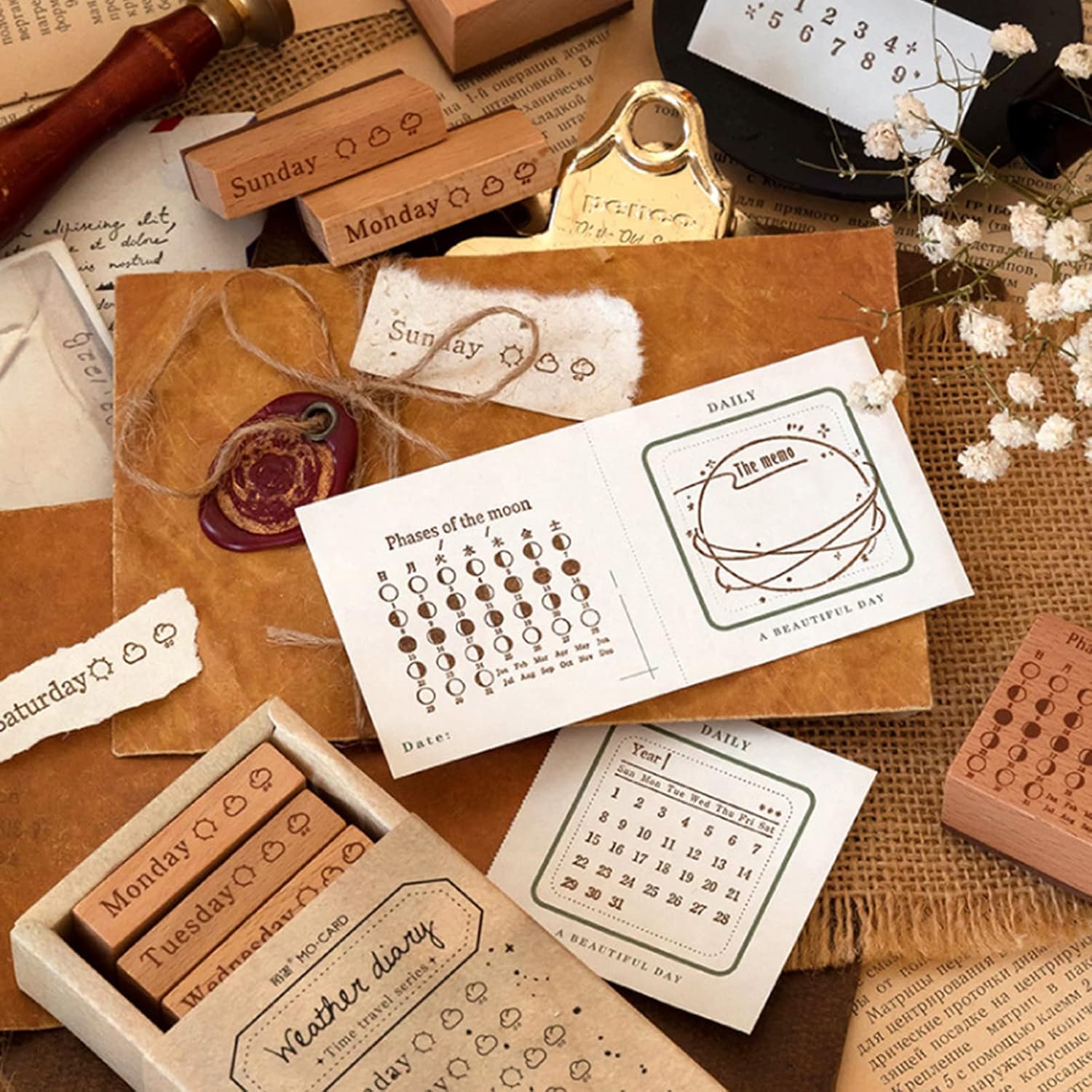 Regalo ideale: un amico ideale Riutilizzabile: è robusto e il legno e la gomma possono ottenere uno schema chiaro Ampio utilizzo: adatto per camera da letto, dormitorio, soggiorno e altro Timbro in legno vintage, kit lettere e numeri, può parole e frasi per biglietti, diari, album, diari e altri