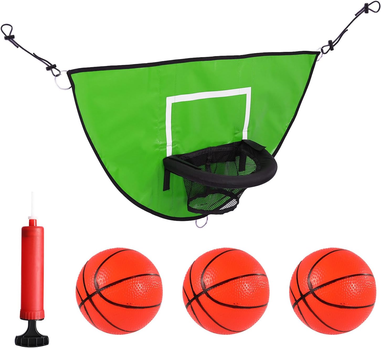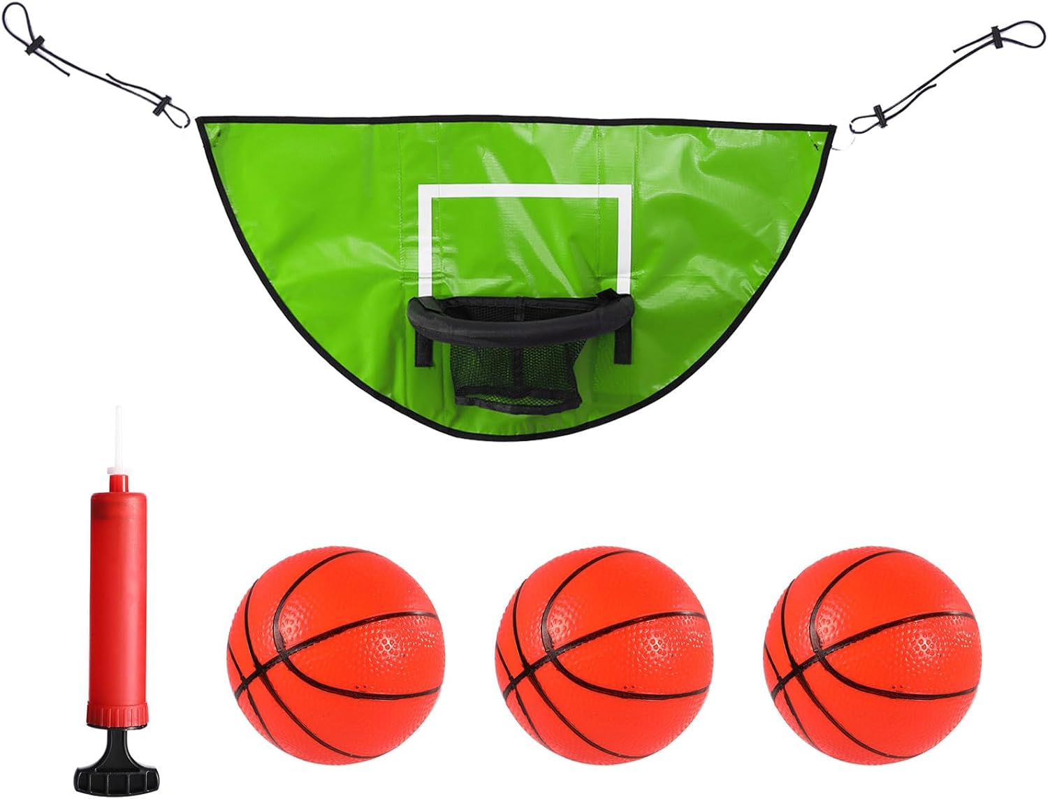 Trasforma i trampolini Backyard in arene sportive dinamiche durante riunioni familiari, feste all'aperto o routine di fitness casual con questo accessorio multiuso da basket Combinando sicurezza ed eccitazione, il meccanismo rinforzato Breakaways previene lesioni e mantenendo il gameplay autentico palloni da basket su trampolini compatibili Migliorare la vostra esperienza di trampolino con questo grande set di basket con caratteristiche Breakaways RIMS per un sicuro PVC dunking Questo set per la ricerca di un gioco attivo adatto alla famiglia e incarica bambini e adulti allo stesso modo con il suo design con bordi protettivi e materiali per la cura di saltare liberamente La tavola Rebounds da 37,8 x 19,69 pollici viene fornita con palline, pompe e cinghie regolabili per un fissaggio sicuro ai poli standard del trampolino senza attrezzi