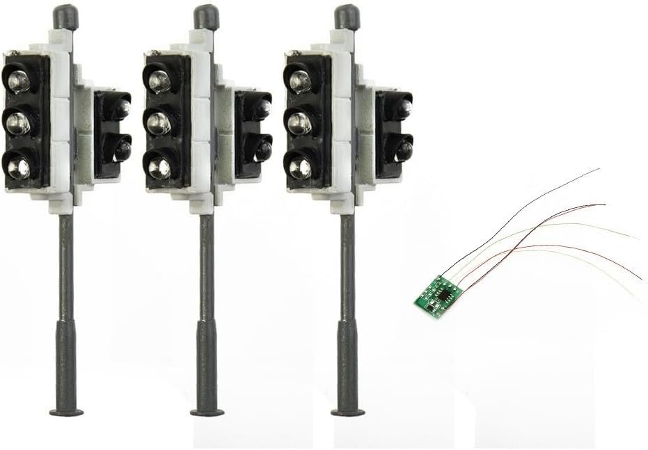 Perfetto per binari ed edifici: questo set include 3 pezzi. Semaforo 00 H0 con luci pedonali e LED, studiato appositamente per progetti di layout ferroviario e edilizio. Attraversamenti pedonali sicuri: i semafori sono dotati di LED rossi, verdi e gialli e vengono utilizzati per fissare gli attraversamenti pedonali agli incroci. Forniscono segnali chiari ai pedoni per navigare in sicurezza nel traffico. Adatto per scala 1:72: con una dimensione adatta per scala 1:72, questi semafori sono perfetti per configurazioni di modellini di treni calibro 00. Aggiungono un tocco realistico al tuo layout e migliorano l'esperienza visiva complessiva. Materiale: realizzati con una combinazione di metallo e materiali plastici, questi semafori sono costruiti per durare. Possono resistere all'uso regolare e mantenere la loro funzionalità nel tempo.