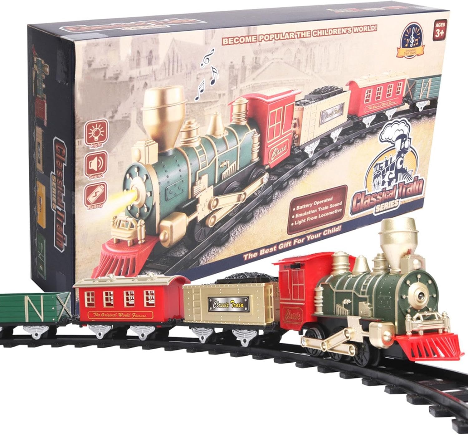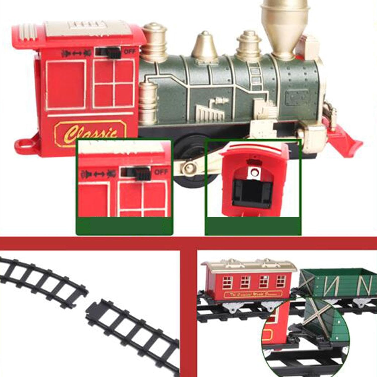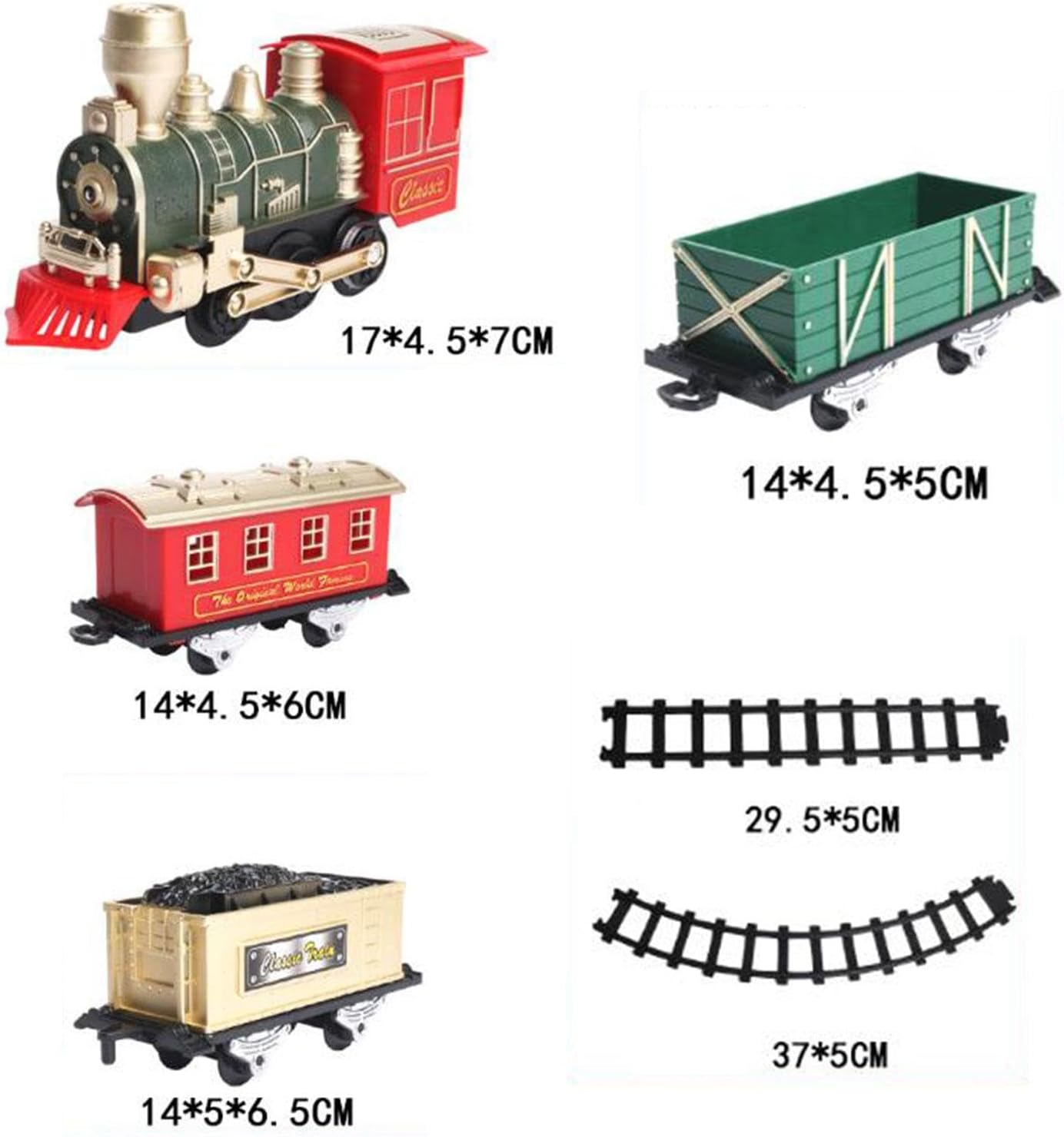 【Materiale】: Questo set di giocattoli è realizzato in PP di qualità, garantendo durata e affidabilità per il gioco dei bambini 【Caratteristiche】: questo set di giocattoli per mini treni natalizi è dotato di luci elettriche e musica per intrattenere il tuo bambino promuovendo al contempo il suo sviluppo cognitivo attraverso il gioco 【Dimensioni del prodotto】: La testa del treno misura 17 * 4,5 * 7 cm, passeggeri è 14 * 4,5 * 6 cm, merci è 14 * 4,5 * 5 cm e della miniera di carbone è 14 * 5 * 6,5 cm. può essere impostata in due configurazioni: una disposizione circolare di 74*74 cm o una disposizione ovale di 74*134 cm 【La confezione include】: il set include 1 testa del treno, 1 carrozza passeggeri, 1 carrozza merci, 1 carrozza della miniera di carbone, 6 binari curvi, 4 binari dritti e un cacciavite 【Tipo di prodotto】: Questo è un giocattolo per trenini natalizi per bambini con luci e musica - Set da 15 pezzi