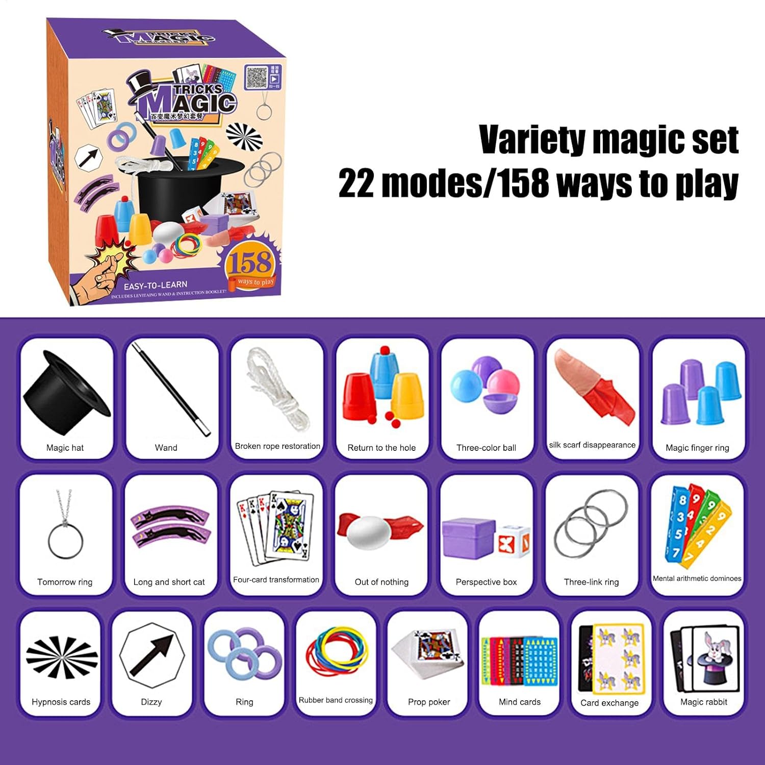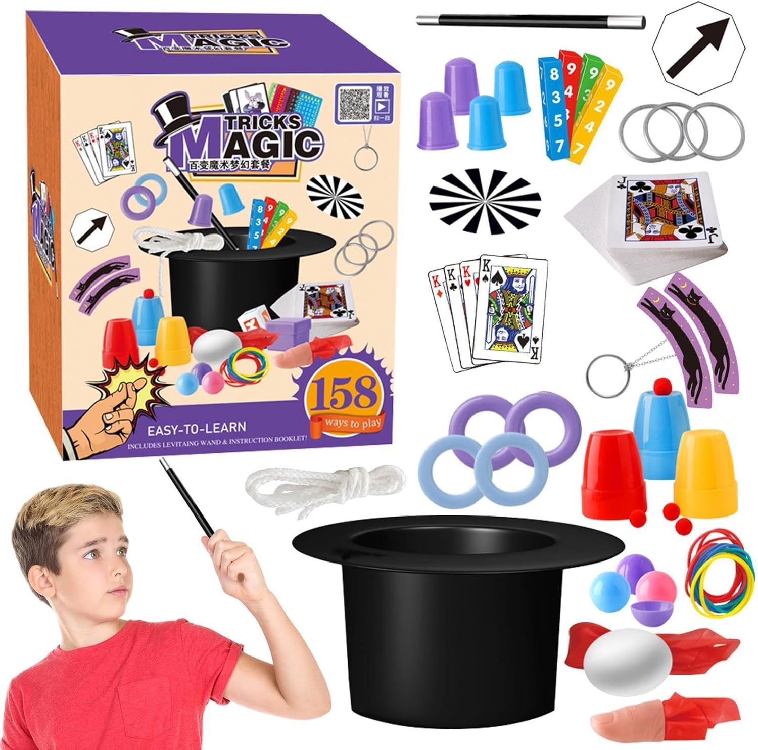 Immagina tutto: il set di ciondoli per bambini comprende un cappello magico, una bacchetta magica e 22 oggetti di scena ed è un modo divertente per i bambini di imparare trucchi magici. Con 158 modi diversi di giocare, i bambini possono sviluppare la propria creatività e abilità senza nemmeno rendersi conto che stanno imparando. Sblocca la magia: il kit magico per bambini include un codice QR che fornisce l'accesso ai video magici per tutti i trucchi inclusi. Il tuo bambino può facilmente diventare un mago professionista seguendo le istruzioni semplificate e utilizzando gli oggetti di scena magici inclusi. Vieni con un kit: presentalo all'incantevole mondo dell'incantesimo con il set di ciondoli per bambini. Progettato per i principianti, contiene trucchi divertenti e facili da imparare per aiutare i tuoi bambini a distinguersi e ottenere applausi durante le esibizioni. Giocattoli pittoreschi per bambini: mantieni il tuo bambino occupato con questa scatola magica perfetta che offre tanti trucchi per esercitarsi e garantisce ore di divertimento misterioso mentre sono sopraffatti dalle possibilità più incantevoli. Bellissimo regalo: questo costume magico è una scelta eccellente per aspiranti maghi che bramano eccitazione e meraviglia. È il regalo perfetto per compleanni, Pasqua, Halloween, Natale e altro ancora, aggiungendo momenti incantevoli alle riunioni di famiglia e alle vacanze