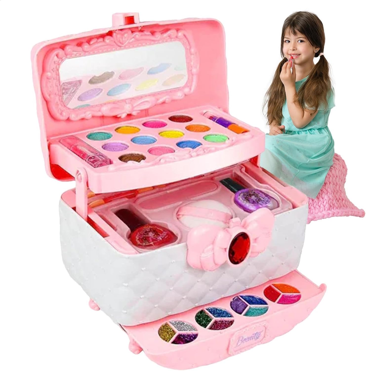 Aumenta l'interazione con il bambino: aiuta le tue piccole principesse a scoprire la loro bellezza mentre imparano con il nostro kit trucco per bambine. Questo set di giocattoli educativi offre una prima esperienza di trucco, realizza i tuoi sogni e promuove l'interazione tra genitore e bambino. Materiale sicuro: con ingredienti naturali, il nostro set di trucco per ragazze non appesantisce la pelle. Grazie ai materiali idrosolubili, è facile da lavare. Con questo set la tua bambina può giocare in sicurezza. Completamente attrezzato: lascia che il tuo bambino sfoghi la sua creatività con questo set multicolore di lucidalabbra, ombretto, fard, glitter e smalto. Questo kit completo per il trucco è realizzato con materiali sicuri e lavabili delicati sulla pelle e include anche un pratico specchio per il trucco. Facile da trasportare: assicurati che gli strumenti per il trucco della tua bambina siano in ordine con questo fantastico kit di trucco per bambini. La graziosa valigetta è perfetta da riporre e può essere facilmente portata ovunque, sia in vacanza che in auto. Regalo sorprendente: questo set di trucco per bambini per ragazze è realizzato con materiali pregiati, delicati sulla pelle e facili da lavare. Che si tratti di Halloween, Natale, compleanno o festa dei bambini, questo set di trucco è un regalo sorprendente che renderà felice ogni ragazza.