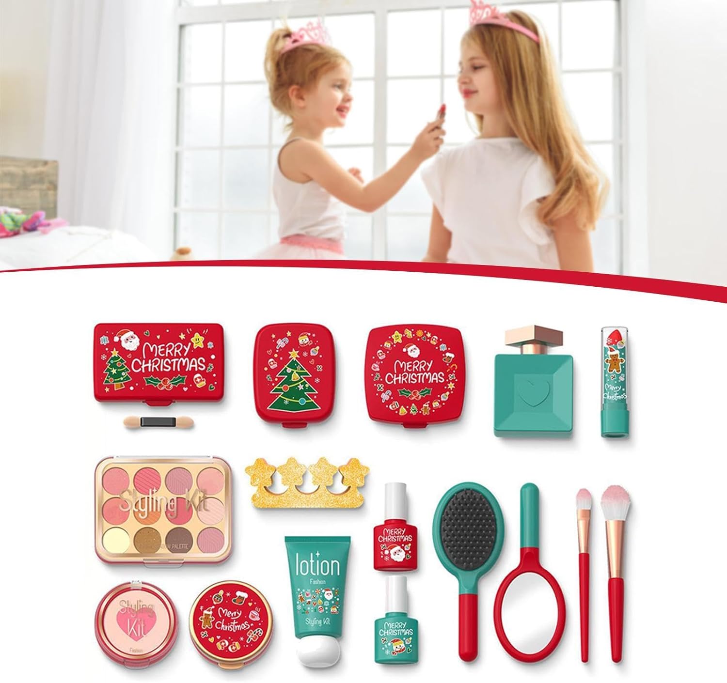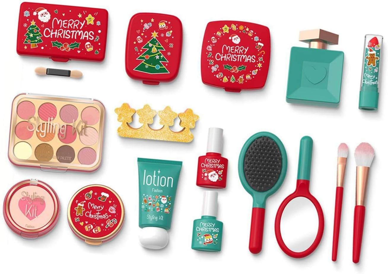 【Set di trucco natalizio festivo】: questo kit di trucco finto è progettato appositamente per i bambini, con un allegro tema natalizio e una confezione, ottimo come regalo per le vacanze e per il gioco festivo 【Design realistico】Progettato con dettagli vividi e realistici, il giocattolo per il trucco sembra un vero trucco, stimolando la creatività e l'immaginazione del tuo bambino 【Incoraggia la creatività】: giocare con kit cosmetici finti aiuta a sviluppare le capacità motorie fini, la coordinazione occhio-mano e le abilità sociali del tuo bambino attraverso giochi di ruolo e giochi interattivi 【Custodia portatile】: questo kit per il trucco finto è facile da riporre o da portare con sé per appuntamenti di gioco, viaggi o riunioni di famiglia 【Materiale】: Realizzato in PP di qualità, ogni pezzo è leggero e costruito per resistere al gioco entusiasta, garantendo durata per i bambini piccoli