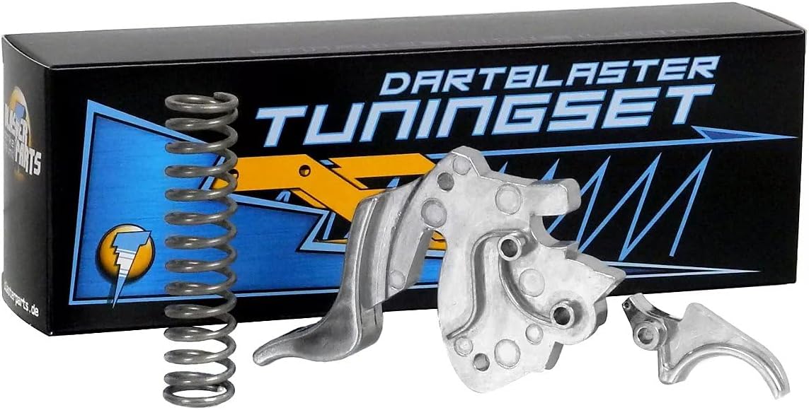 L'irresistibile set completo Fullmetal Hammershot. Questo fantastico set di tuning offre tutto il necessario per iniziare subito: blaster, molla di sintonizzazione, rubinetto e grilletto in metallo Mega bundle completo con blaster, molla tuning, rubinetto a torretta e grilletto in metallo Il popolare classico NERF con funzionamento con una sola mano, con tamburo rotante a 5 freccette e elegante meccanismo a martello, in confezione doppia Elegante rubinetto per revolver e grilletto in metallo da montare nel Hammershot garantiscono una sensazione di torretta senza precedenti – più di una porzione extra di stile per il vostro blaster – variante di colore più brillante rispetto al set in metallo da pistola Aumento delle prestazioni fino al 70% grazie alla molla più forte – Montaggio semplice, con istruzioni di montaggio e grasso lubrificante