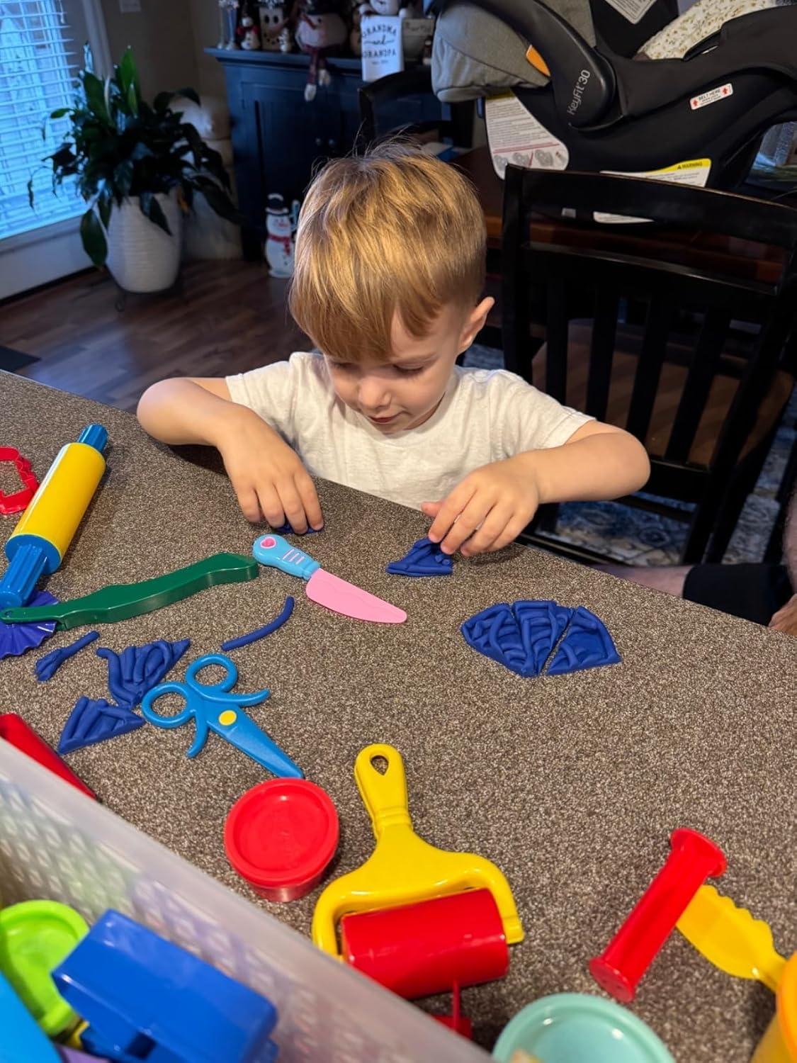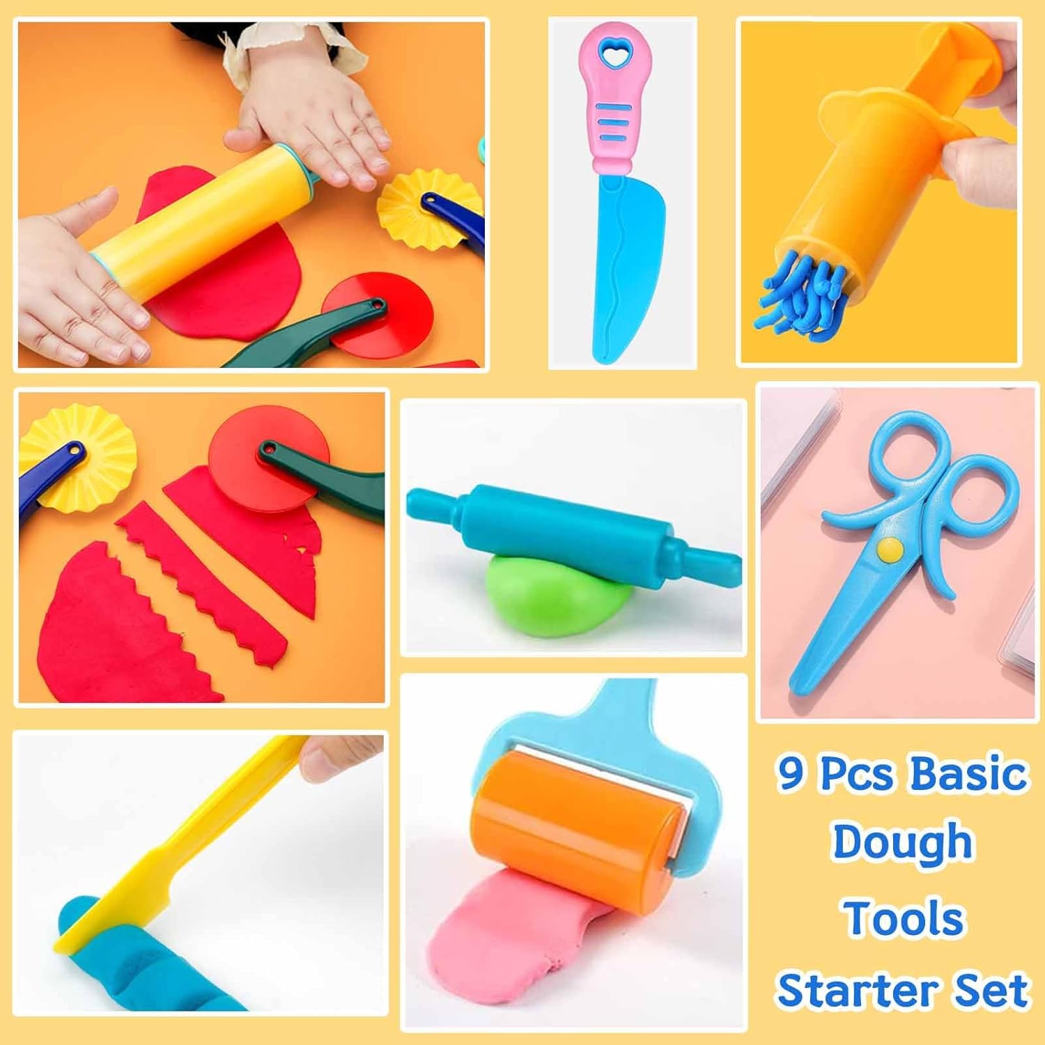 Set completo: set di attrezzi per impastare da 9 pezzi con diversi utensili per modellare e modellare in modo creativo Utensili versatili: include mattarello, stampini, forbici per bambini, estrusore e lame in plastica per varie tecniche di formatura Adatto ai bambini: strumenti appositamente progettati con bordi arrotondati e dimensioni adatte ai bambini per un gioco sicuro Funzionamento pratico: strumento leggero ed ergonomico, perfetto per le mani dei bambini piccoli Materiale durevole: robusta struttura in plastica per un divertimento duraturo, facile da pulire e riporre