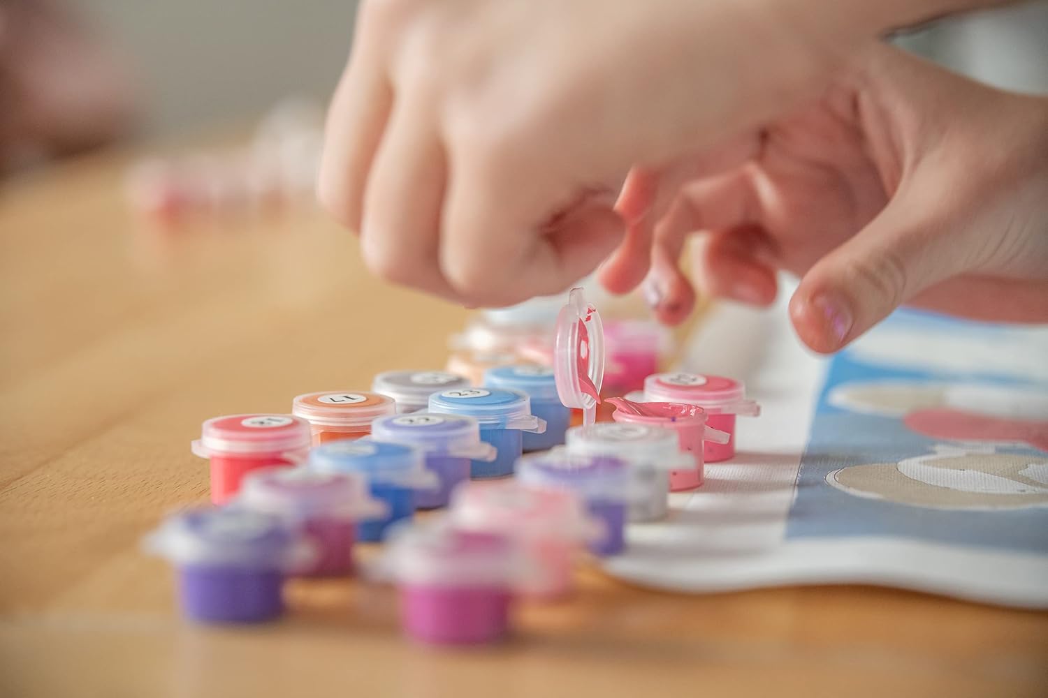 SEMPLICE - Le aree numerate prestampate sul motivo devono essere colorate con i colori dei vasi corrispondenti. Una vista cartacea serve da orientamento se i numeri sono stati ridipinti. RILASSATO - Dipingi con i numeri è un buon equilibrio contro lo stress quotidiano. Il focus è su un passatempo creativo che può essere messo in pausa e continuato a piacimento. La velocità non ha importanza. CREATIVO - Adulti e bambini possono essere introdotti alla pittura con colori reali e creare i propri capolavori. Gli utenti avanzati possono attenuare i colori o aggiungere le proprie idee dettagliate. UNIVERSO - Una volta completata, l'opera d'arte può essere utilizzata per abbellire le proprie pareti. È anche un'ottima idea regalo, dipinta o non dipinta, perché il fai da te è di tendenza. AMBITO DI CONSEGNA - Riceverai un motivo di 40x50 cm teso su un telaio con i relativi barattoli di vernice, pennelli e ciotole. Riceverai anche un cavalletto in legno abbinato.