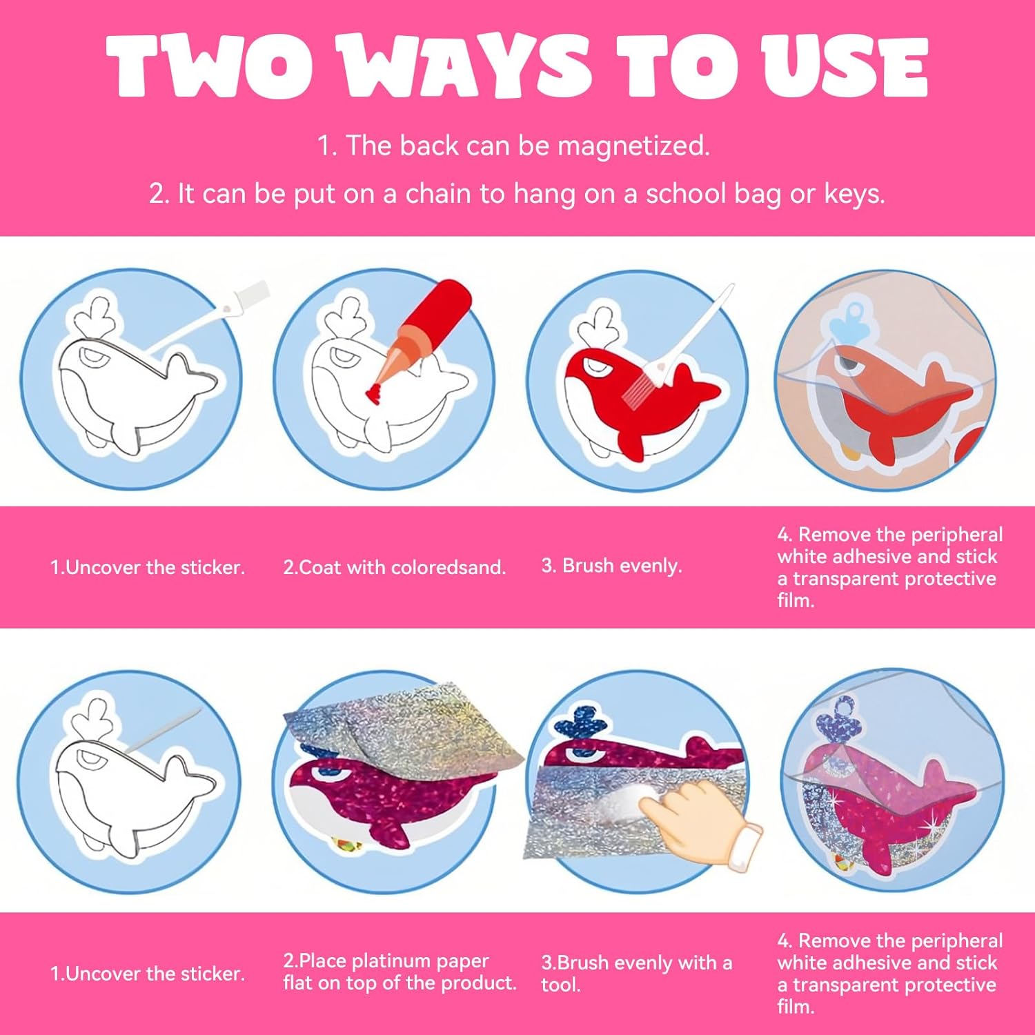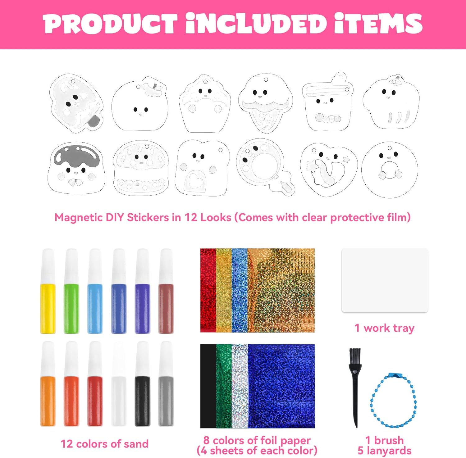 Sand & Folie Spaß Bastelset -- Das Sand & Folie art und Basteln ist eine beliebte kreative Bastelset für Kinder. Art und Bastelist eine beliebte kreative Bastelset kinder. Realizzare facilmente splendide immagini con pellicole di trasferimento colorate e sabbia. Rimuovere le parti desiderate della pellicola adesiva, premere la pellicola o cospargere di sabbia. In elegante scatola portaoggetti. Contenuto: 12 tubetti di sabbia colorata, 12 modelli di produzione, 12 fogli di pellicola trasparente, 1 pennello, 32 lamine metalliche, 5 portachiavi, 1 vassoio di plastica. Tutto ciò di cui hai bisogno, È incluso in questo set. Materiali di alta qualità: sabbia e pellicole per bambini integra qualità e set fai da te, facile da strappare e incollare. Scegliere l'immagine, scegliere l'adesivo e colorarlo con pellicola scintillante e sabbia colorata. In questo modo i bambini possono provare diversi metodi di inserimento e combinazioni e creare le proprie scene a tema! Goditi la gioia della creazione libera senza preoccuparti di oggetti danneggiati e soddisfa la passione di ogni bambino. Rendi il viaggio artistico dei bambini non solo divertente, ma anche senza preoccupazioni. Kids Travel Activities -- Se siete alla ricerca della giusta attività di viaggio per i vostri bambini, provate questa attività divertente con sabbia e pellicola per bambini dai 6 ai 12 anni; il nostro set di arte divertente per bambini è confezionato in modo pratico e perfetto per i bambini per giocare in auto, aereo, ristorante o picnic. Crea un meraviglioso momento di connessione e rende i viaggi un'esperienza interattiva indimenticabile! Stimolate la creatività del vostro bambino: con il nostro set fai da te in pellicola di alluminio e sabbia, il tuo bambino può esplorare i suoi talenti artistici! Con i colori vivaci dei nostri kit fai da te in sabbia e lamina e i materiali facili da usare, i bambini possono creare splendidi disegni e opere d'arte che mostrano il loro stile unico e la loro immaginazione. Regali per bambini Fun Craft: le immagini di sabbia e pellicole fai da te e artigianato kit sono il regalo perfetto per età compresa tra 6, 7, 8, 9, 10, 11, 12 e 13! Molto adatto per famiglie, scuole, asili e viaggi, in modo che i bambini possano stare lontani dagli schermi elettronici e immergersi nel divertimento dei giochi fai da te. È la scelta migliore per ragazzi e ragazze per Natale, Pasqua, inizio della scuola e compleanni.