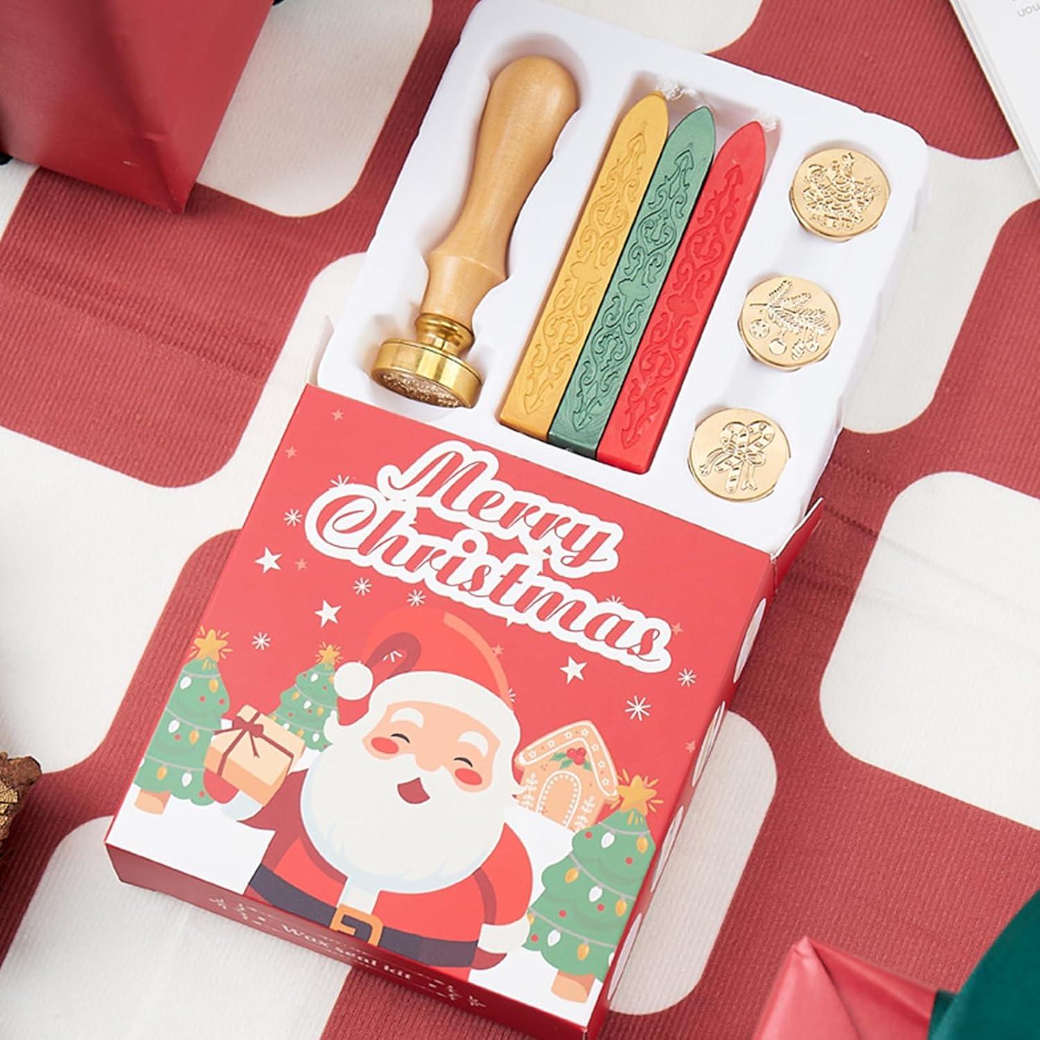 set timbri con sigillo a tema natalizio è ottimo per sigillare buste, bottiglie vino o per realizzare inviti nozze, biglietti Natale, biglietti biglietti per festival, decorazioni per pacchi, abbellimenti per scrapbooking set francobolli per le vacanze Natale con tutto necessario per sigillare, ottimo per appassionati hobbisti e scrapbooking. Con questo set francobolli vintage, potresti creare un modello creativo e speciale da Regalo festa per amici e a Natale, Ringraziamento, compleanno, anniversario e altri festival La confezione include: 1 timbro con manico in legno, 3 sostituibili con testa per timbro a tema natalizio, 3 bastoncini con sigillo Redness, oro e verde, tre bastoncini sigillo colore diverso con luster unici, quantità sufficiente per soddisfare le tue esigenze creazione e decorazione. Puoi mescolare colori diversi per creare un bel colore e un effetto sorprendente