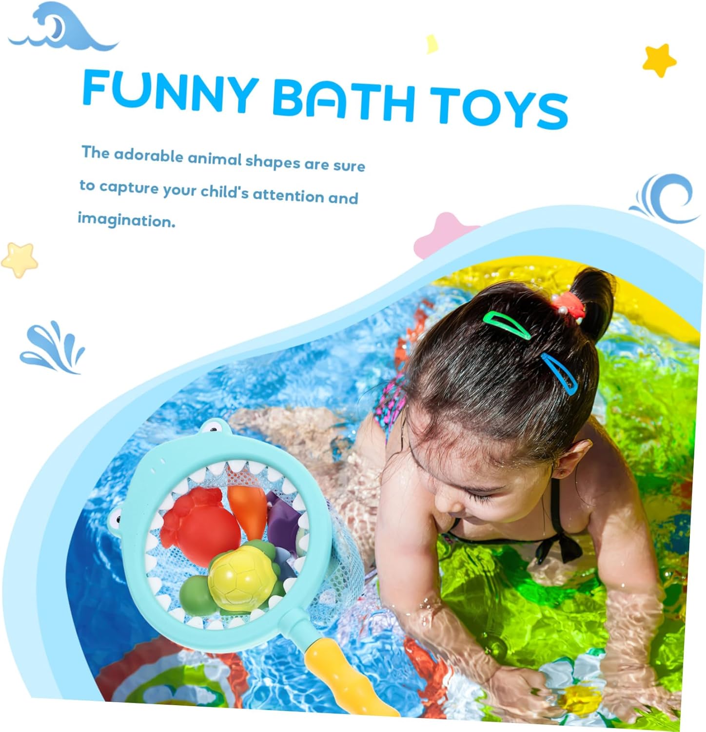 Facile da riporre: è compatto e facile da riporre, rendendolo perfetto per piccoli bagni o ripostigli, giocattoli da vasca, accessori da bagno per bambini piccoli. Portatile e leggero: è leggero e facile da trasportare, rendendolo perfetto per i viaggi e l'uso domestico. Giocattoli da bagno con rete, rete da pesca per vasca Perfetto: è l'ideale per ogni bambino che ama fare il bagno e giocare con i giocattoli da bagnomaria, i giochi d'acqua o i giocattoli da doccia per i giocattoli da bagno: la bella forma può attirare l'attenzione del bambino, calmando così le sue emozioni. Può allenare le abilità pratiche del giocattolo da bagno da pesca. Temperatura: cambia colore con la temperatura dell'acqua, rendendo il bagno più divertente. giocattoli doccia per la vasca da bagno. giocattoli da bagno