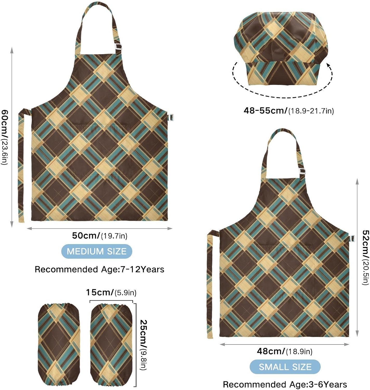 Dimensioni: il set di cappelli da chef per bambini di piccole dimensioni per bambini dai 3 ai 6 anni è alto 52,1 cm, largo 48 cm. Il costume da chef per bambini di taglia media per età compresa tra 7 e 12 anni è alto 59,7 cm, largo 50 cm. Il cappello delle due dimensioni misura 48-55,1 cm. ?La custodia misura 15 x 24,9 cm. Materiale di alta qualità: il cappello da chef per bambini è realizzato in poliestere, morbido tessuto impermeabile twill 290, per una sensazione confortevole quando si indossa. Protezione delle maniche con una grande tasca: due maniche possono proteggere i bambini da acqua, olio e pigmenti. Con grandi tasche decorative e funzionali, è comodo mettere alcuni strumenti quando si utilizza, adatto per imparare a cucinare, fare caramelle, dolci, ecc. Scenario applicabile: ideale per asilo, asilo, cucina, sala pittura, giardino, Halloween, Natale, abbigliamento del Ringraziamento, artigianato e attività di pittura artistica, festa di compleanno per incoraggiare i bambini a sviluppare la loro cucina, pittura, cottura, giardinaggio o altre abilità. L'articolo include: Il costume da chef Kid include 1 grembiule leggero, 1 cappello da chef e 2 maniche. Il set di grembiule per bambini può dare ai bambini una buona esperienza di utilizzo per cucinare o dipingere come fornelli o pittori professionisti.