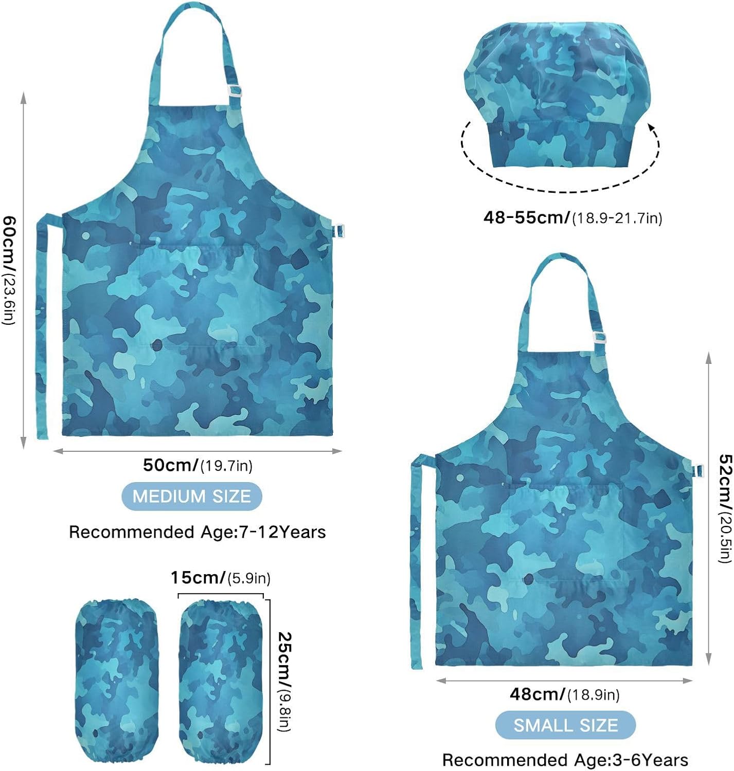 Set grembiule per bambini impermeabile blu scuro Pattern_2 bambini grembiule cappello da chef set per bambini 3-12 anni