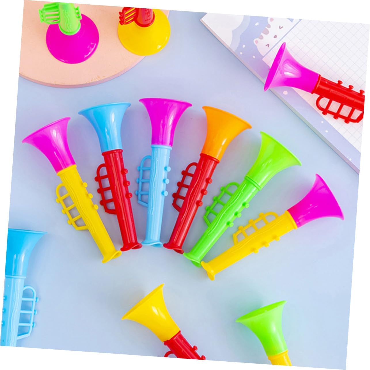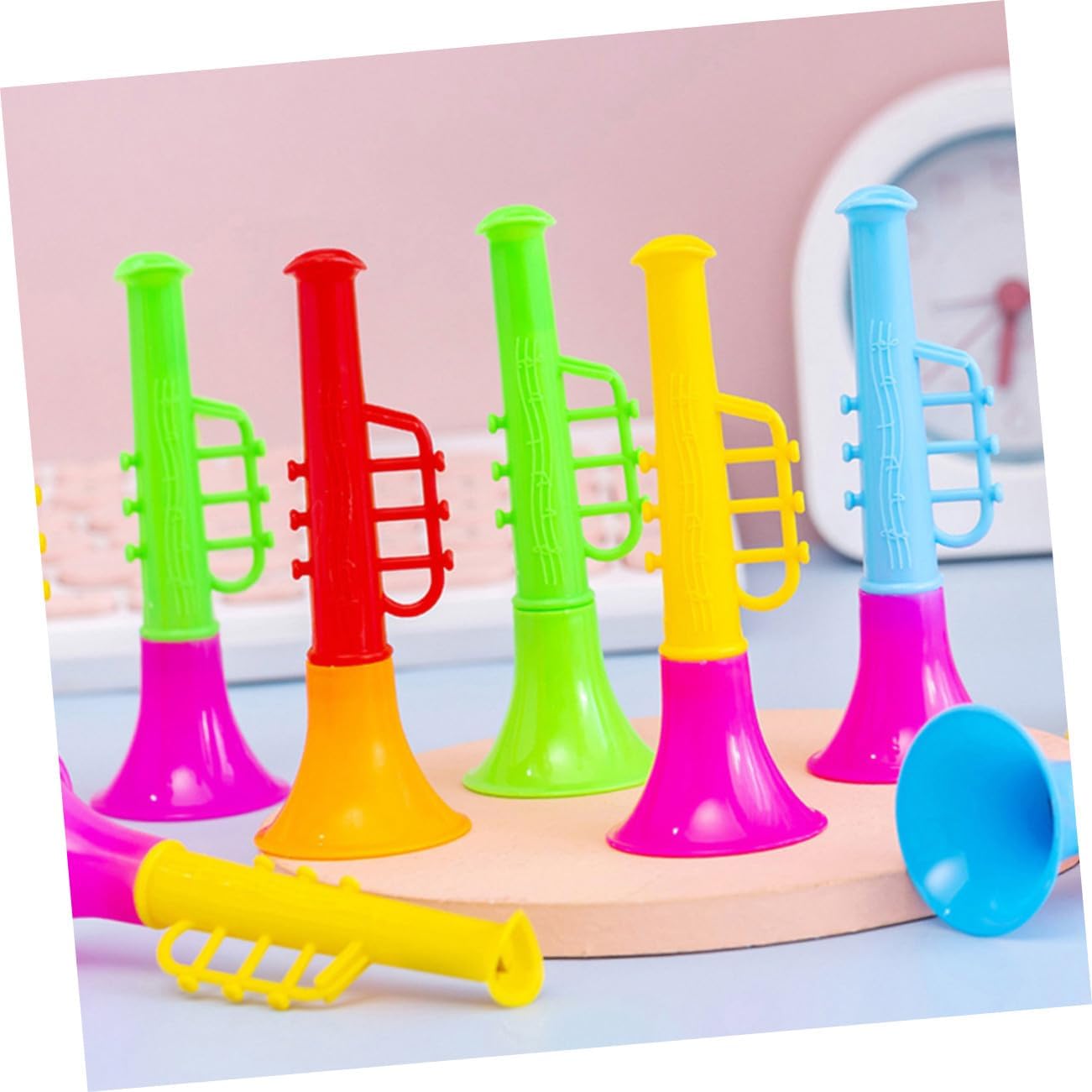 Tromba giocattolo in plastica: dettagliata e per provare un divertimento senza fine, sicura e inodore, sicura da usare, trombe di plastica colorate Tromba per bambini: design colorato e bella forma a corno, attira l'attenzione del tuo bambino, piacerà moltissimo, giocattolo per tromba per assortimento di trombe: piccolo e delicato, adatto ai bambini e comodo da portare ovunque, mini tromba in plastica, regalo per feste per strumenti musicali: realizzata in plastica di alta qualità, robusta e durevole, può accompagnare a lungo senza danni, mini giocattolo giocattoli musicali a tromba: è composto da piccole trombe giocattolo e può essere utilizzato dai bambini per lungo tempo