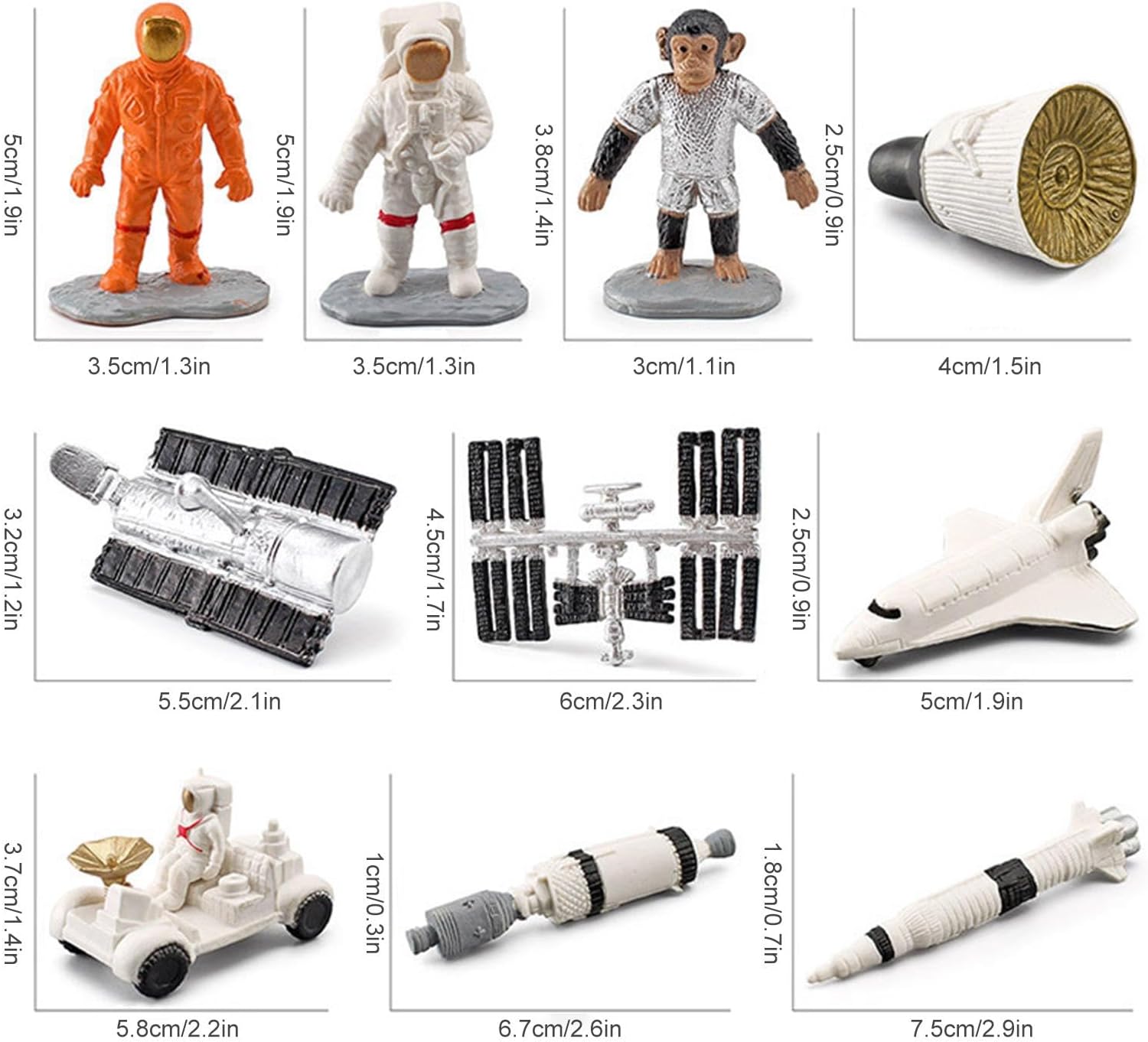 Gioca imparando: il set di modelli 'astronauta è ottimo per educare i bambini sul nome e sul ruolo di ogni giocattolo. Il set di modelli per astronauti in miniatura aiuta i bambini a sviluppare un interesse per lo spazio. Aspetto realistico: il nostro set di modelli di astronauti in miniatura è ben fatto, il set di statuette di figurine di astronauti ha una superficie chiara e una forma realistica, attenzione a non esporlo al sole. Materiale impermeabile: questo set di statuette di figurine di astronauti è realizzato in un eccellente PVC ecologico non tossico, che può prevenire efficacemente la rottura e lo scolorimento del set di giocattoli con figure di astronauti. Occasioni applicabili: il set di giocattoli con figure di astronauti è l'ideale come decorazione ideale per case, uffici, biblioteche, caffetterie, caffetterie, sale da tè e hotel. Regalo eccellente: le statuette di figurine di astronauti di dimensioni ridotte sono così portatili che si adattano perfettamente alla mano. L'Astronaut Model Set è anche un'ottima opzione regalo, perfetta per compleanni e festival.