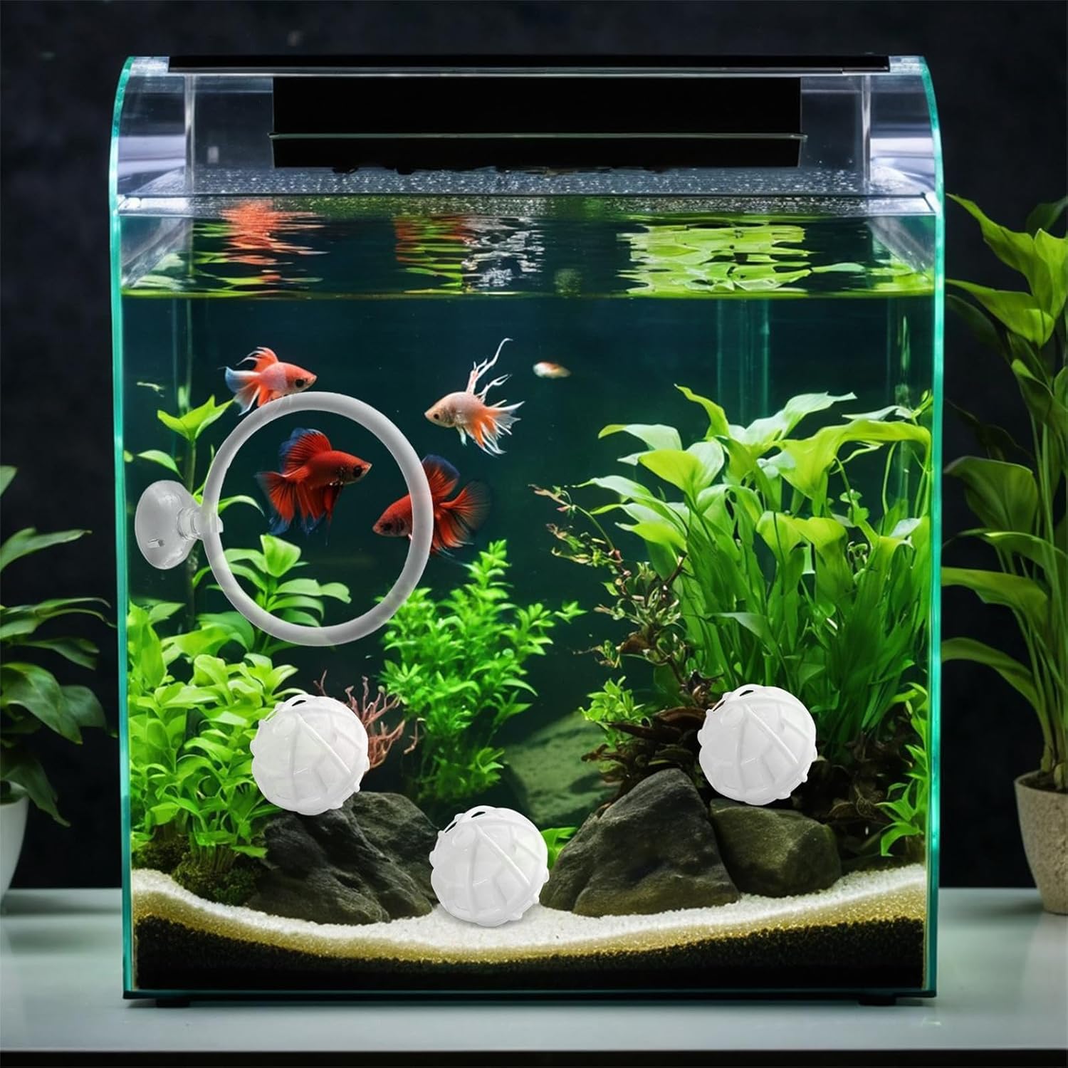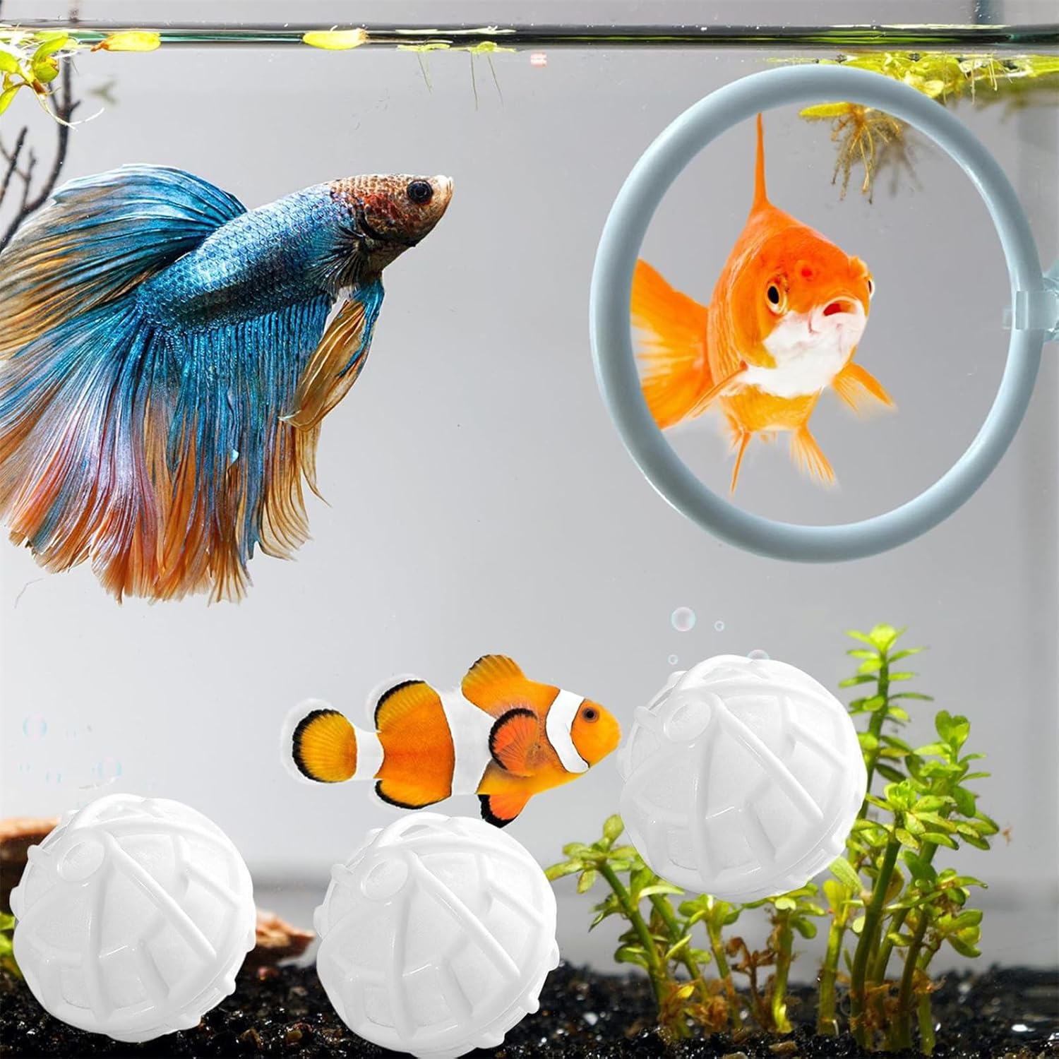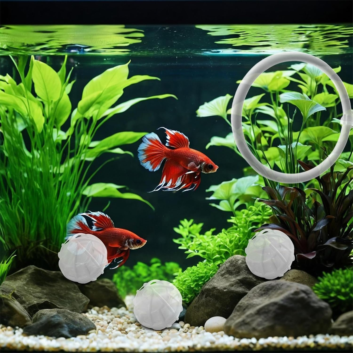 Perfettamente posizionato in serbatoi d'acqua o terrari più freschi. definisce zone di alimentazione e zona di pulizia in cui gli animali domestici vengono esplorati sostenendo l'equilibrio ecosistemico Il design bianco conferisce agli habitat subacquei un incantesimo estetico, mentre la componente modulare consente la pulizia e l'uso senza sforzo Migliora l'ambiente del tuo animale domestico Aquatics con questi anelli Bettas del set di giocattoli di arricchimento dispone di una base a ventosa sicura, una sfera filtrante nitrizing per la pulizia dell'acqua e la costruzione in plastica Gli anelli di alimentazione da 2,87 pollici rimangono saldamente alla parete degli acquari, mentre la sfera filtrante favorisce una crescita benefica e mantiene la grande qualità dell'acqua Ideale per i proprietari di pesci Bettas, gli appassionati di tartarughe acquatiche e gli appassionati di acquari cercano anelli interattivi che stimolano comportamenti naturali e migliorano l'igiene dei carri armati