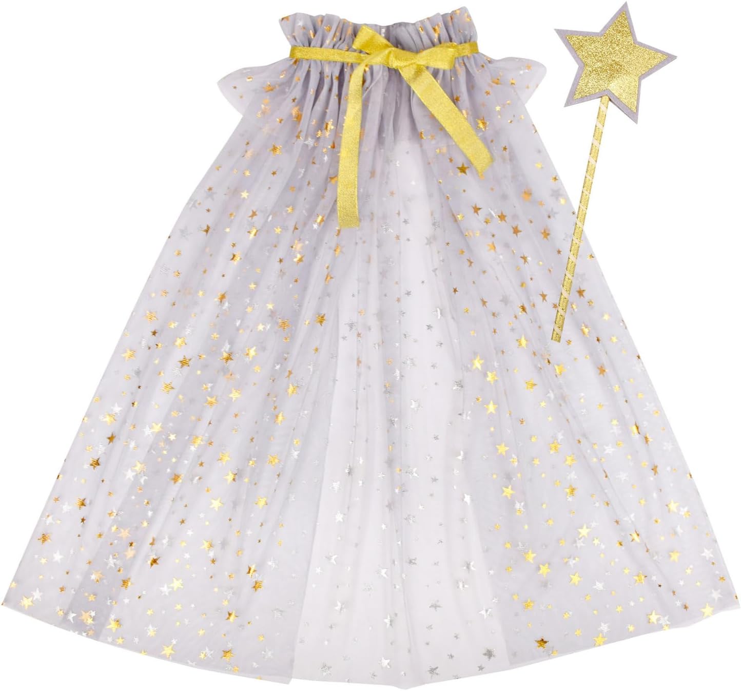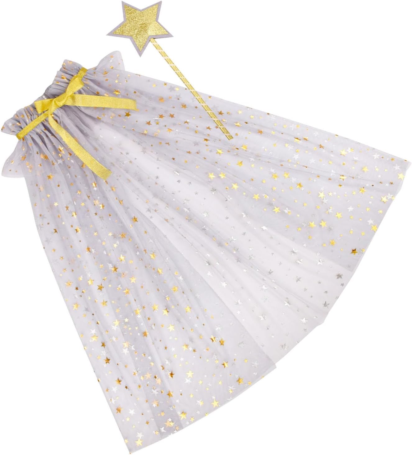 ☞ Set di 2 bacchette magiche a forma di stella per ragazze e un mantello in tulle, per accendere l'immaginazione. ☞ Realizzato in tulle leggero e morbido, il mantello è decorato con stelle, mentre la scollatura regolabile garantisce una vestibilità comoda. ☞ Progettato per i bambini, rendendolo ideale per sognatori e fate in erba. ☞ Ideale per feste di compleanno, cosplay, spettacoli teatrali o servizi fotografici, questo costume promette di creare ricordi indimenticabili e momenti affascinanti. ☞ Porta la magia con questo set di bacchetta e mantello, un accessorio indispensabile per la collezione fantasy di ogni bambino, assicurando che si distinguano tra la folla in ogni occasione festiva.