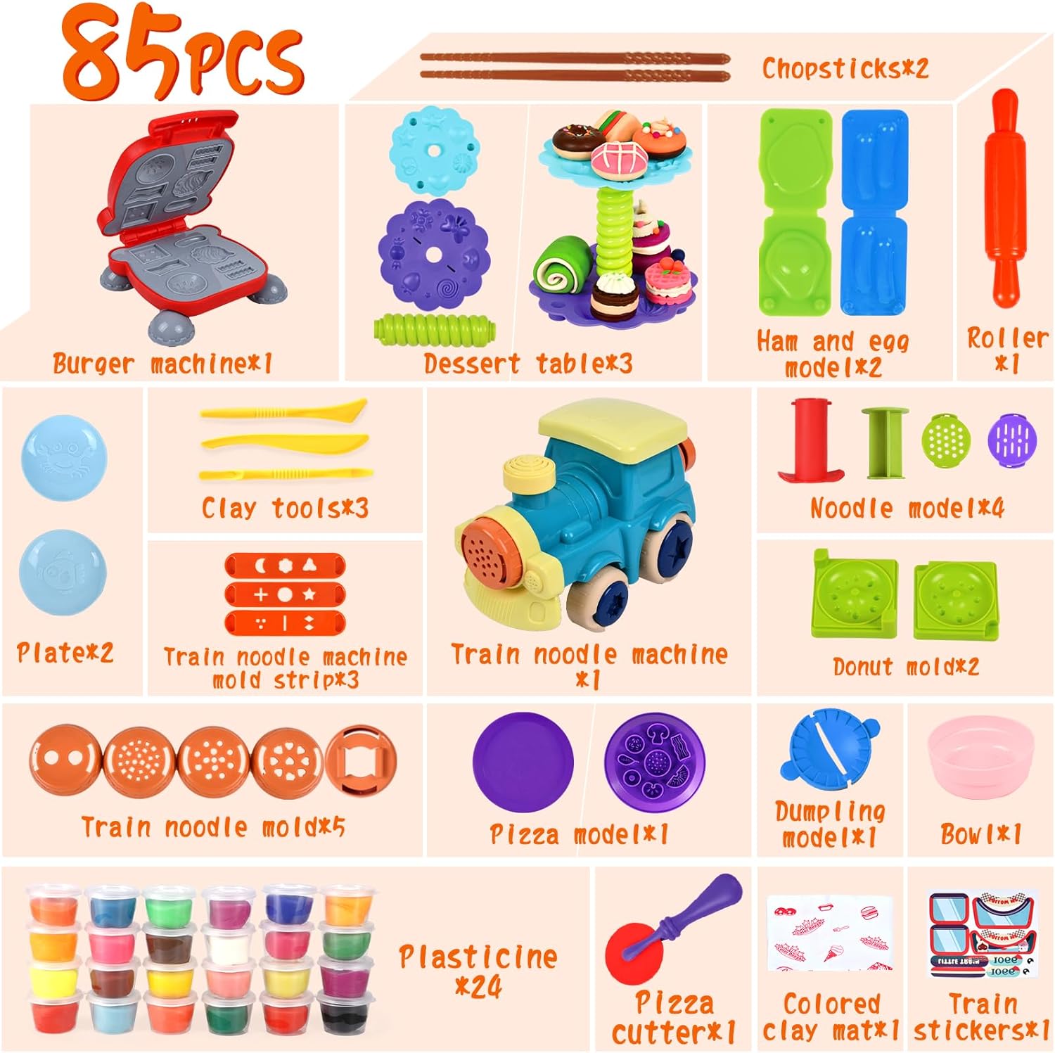 🍔[Set di strumenti per impastare da 85 pezzi] - Il set di giocattoli per l'impasto comprende: 24 barattoli di pasta, macchina per la pasta, gelatiera, griglia per dessert, forme di pasta di argilla come animali, cibo e varie forme geometriche. E strumenti per l'impasto in argilla come tagliapasta per bambini, mattarelli, taglierini, estrusori, forbici per pasta da gioco e tagliapasta. Una varietà di accessori e modelli stimolano l'immaginazione e la creatività dei bambini e promuovono le abilità pratiche dei bambini. 🍝[Giocattoli creativi fai da te] - Con gli strumenti per impastare, le formine per biscotti e le forme cave di persone, animali, alberi di Natale, stelle, forme base e molto altro ancora, si possono inventare e raccontare storie. È un regalo ideale per l'apprendimento precoce (colore casuale). Esiste più di un modo per realizzare una forma, libera la fantasia e lavoraci sopra con i bambini! 🍬[Sicuro e riutilizzabile] Ogni accessorio per pasta per styling è realizzato in plastica sicura e di alta qualità, con materiali robusti e durevoli; L'argilla è composta da grano commestibile, sale e acqua e non è grassa. Il materiale è sicuro e può essere utilizzato tranquillamente dai bambini. Abbinato a una varietà di stampi in argilla colorata, può essere utilizzato per realizzare vari tipi di prodotti in argilla colorata. 🍇[Regalo perfetto] Confezione regalo squisita. Per i bambini che amano cucinare giochi in costume o giochi di ruolo, questo è un regalo ideale! Poiché le possibilità creative sono quasi illimitate, i bambini possono dare libero sfogo alla loro creatività. Adatto a bambini dai 3 anni in su! ❤️Garanzia di qualità ZLPBAO: il cliente è la nostra massima priorità. Se hai domande o problemi di qualità con questi strumenti per impastare, invia un'e-mail direttamente al venditore e ti forniremo una soluzione entro 24 ore. ***Il modellino del treno è solo una macchina per la pasta, non una macchinina.