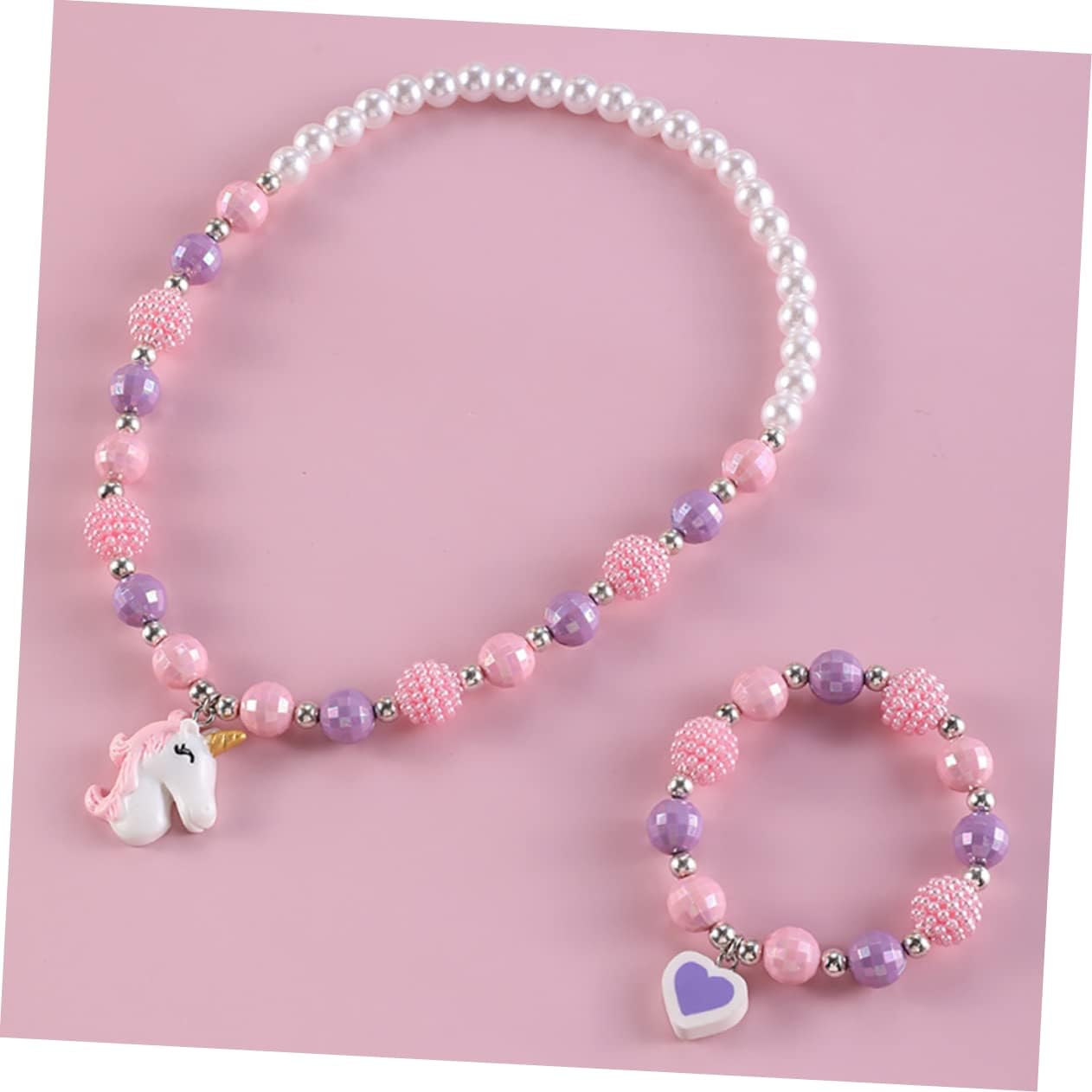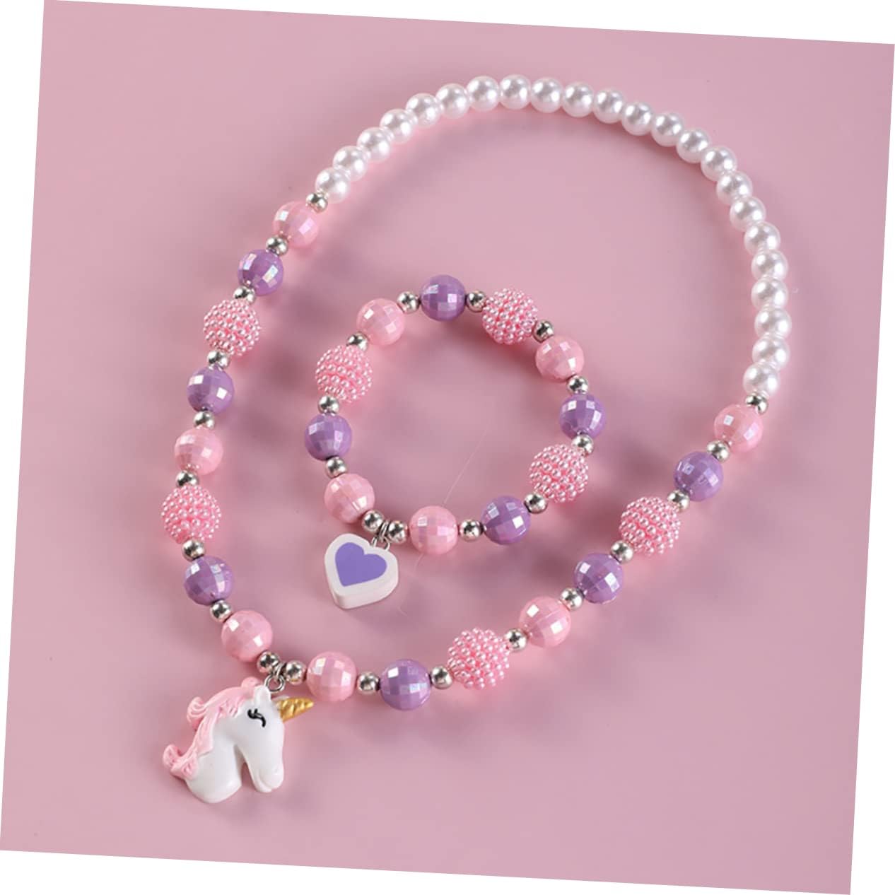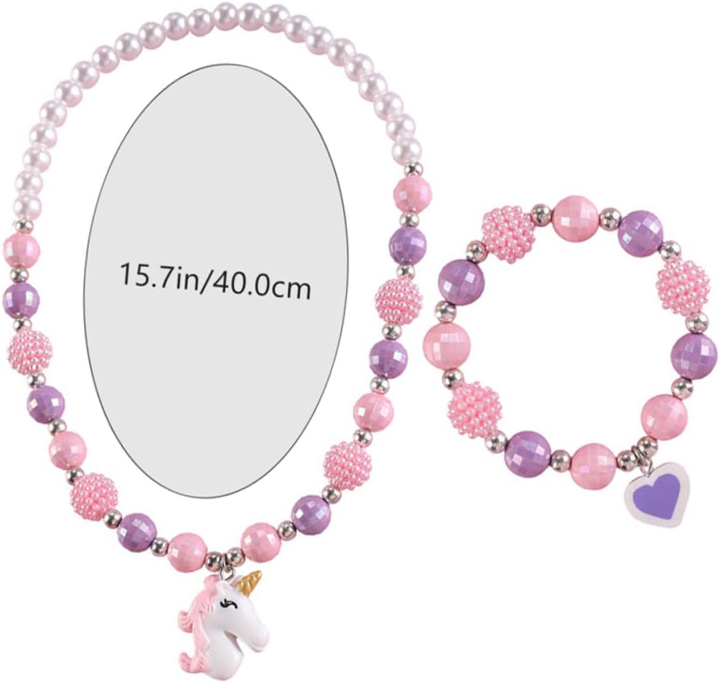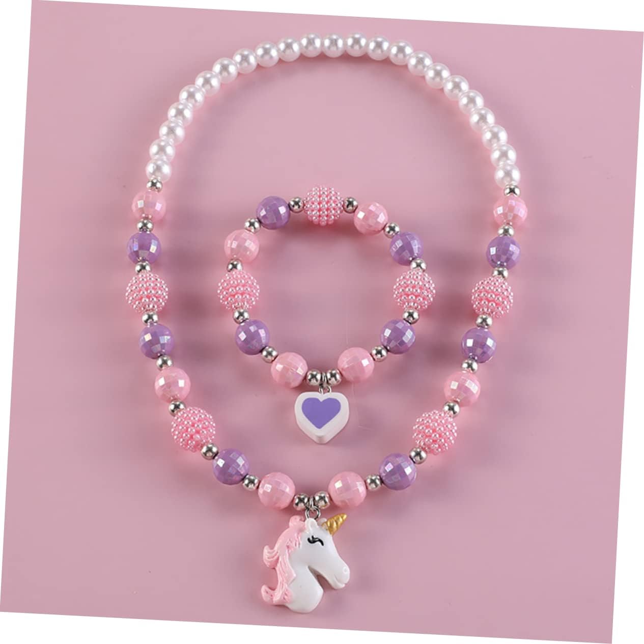 dei pacchetti 1 x braccialetto 1 x collana Caratteristiche -Dimensioni: circa 40,00X1,00X1,00 cm / 15,72X0,39X0,39 pollici di adorabile ciondolo da collo. -Materiale: eleganti gioielli da polso in acrilico e resina. -Colore: Decorazione del collo in colori assortiti. -Questa collana con ciondolo a forma di unicorno è una deliziosa e unica collana per bambini. -Questo braccialetto è caratterizzato da un ciondolo a forma di cuore, che lo rende un braccialetto per bambini davvero unico. -Questo adorabile set con collana e bracciale è adatto a molte occasioni, anche da polso. -Un set è composto da una collana e un braccialetto, ottimi accessori per impreziosire una catena da polso. -Il braccialetto rosa è adatto alle bambine e alle bambine e ha un aspetto sognante, una catena al collo alla moda. Informazioni sulle merci Ornamento da polso Design creativo a tema unicorno, piacerà ai bambini. Grazioso ornamento da collo Scegli perline in materiale con texture trasparente, rosa, bianco, viola per l'uso da parte dei bambini, adatte a tutti i tipi di abbigliamento quotidiano. Bellissima catena da polso Questo set di gioielli a tema unicorno da 2 pezzi è alla moda che adorabile