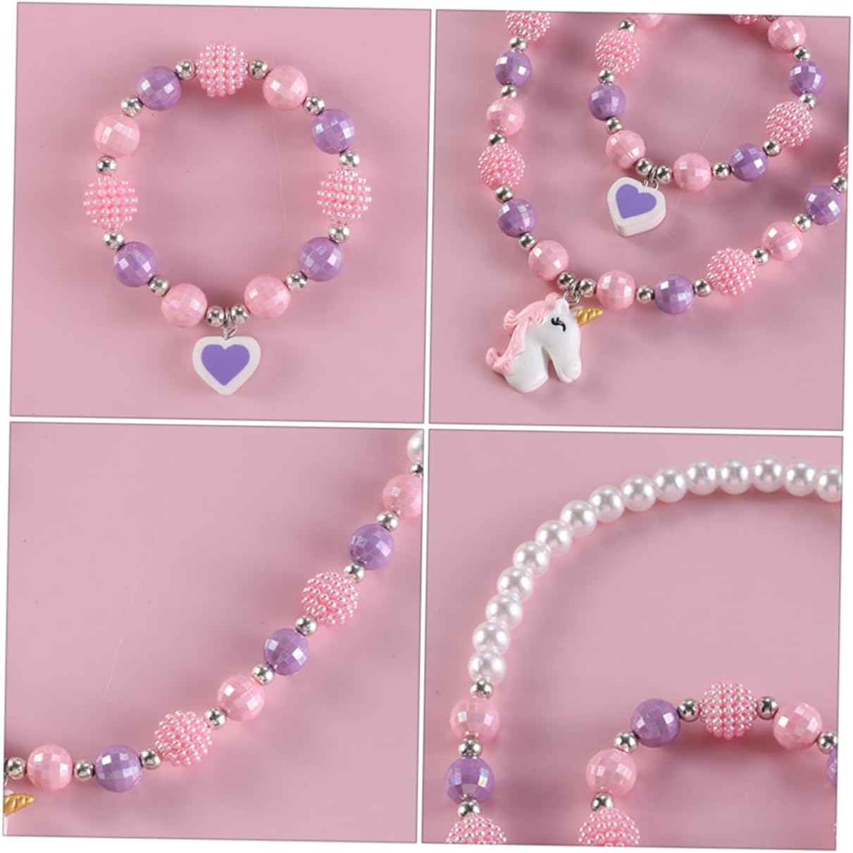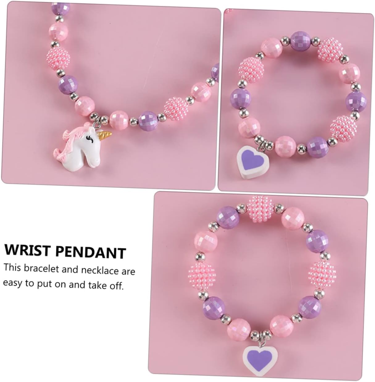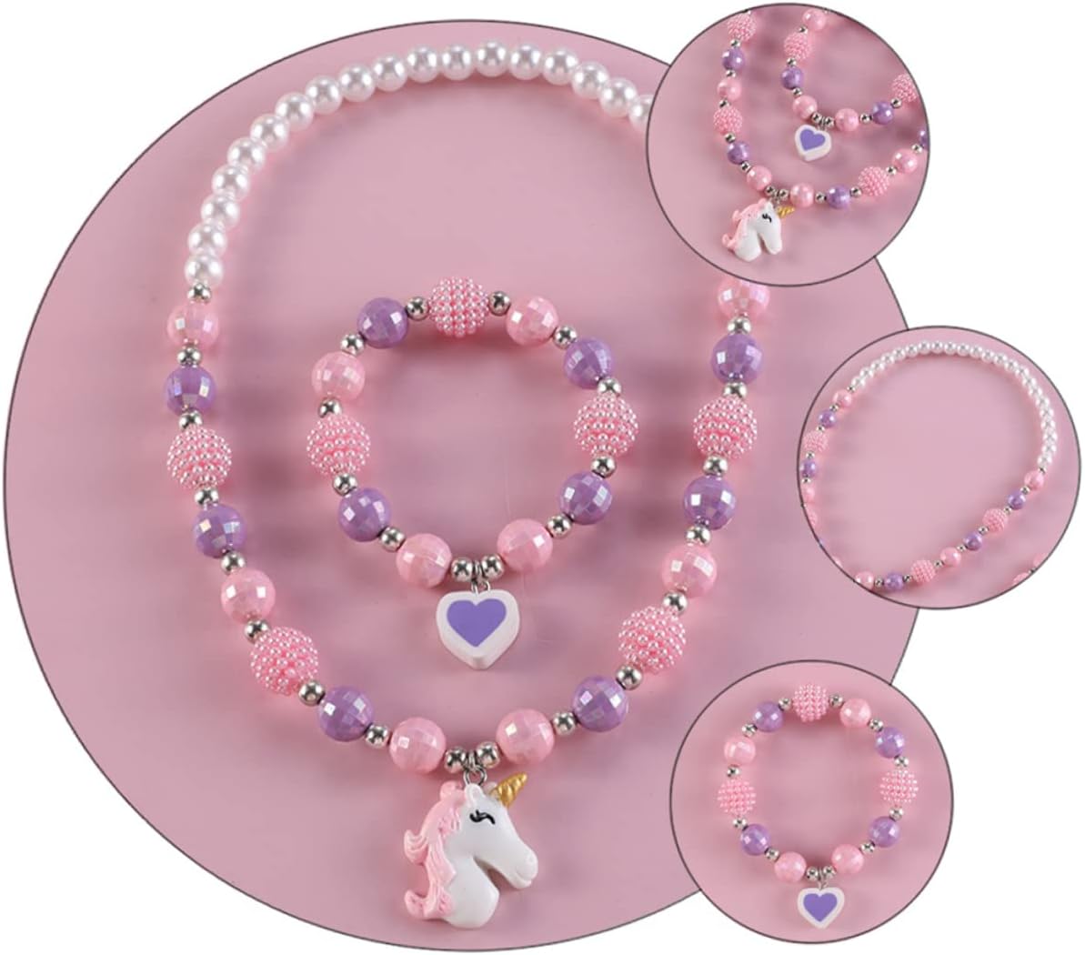 dei pacchetti 1 x braccialetto 1 x collana Caratteristiche -Dimensioni: circa 40,00X1,00X1,00 cm / 15,72X0,39X0,39 pollici di adorabile ciondolo da collo. -Materiale: eleganti gioielli da polso in acrilico e resina. -Colore: Decorazione del collo in colori assortiti. -Questa collana con ciondolo a forma di unicorno è una deliziosa e unica collana per bambini. -Questo braccialetto è caratterizzato da un ciondolo a forma di cuore, che lo rende un braccialetto per bambini davvero unico. -Questo adorabile set con collana e bracciale è adatto a molte occasioni, anche da polso. -Un set è composto da una collana e un braccialetto, ottimi accessori per impreziosire una catena da polso. -Il braccialetto rosa è adatto alle bambine e alle bambine e ha un aspetto sognante, una catena al collo alla moda. Informazioni sulle merci Ornamento da polso Design creativo a tema unicorno, piacerà ai bambini. Grazioso ornamento da collo Scegli perline in materiale con texture trasparente, rosa, bianco, viola per l'uso da parte dei bambini, adatte a tutti i tipi di abbigliamento quotidiano. Bellissima catena da polso Questo set di gioielli a tema unicorno da 2 pezzi è alla moda che adorabile